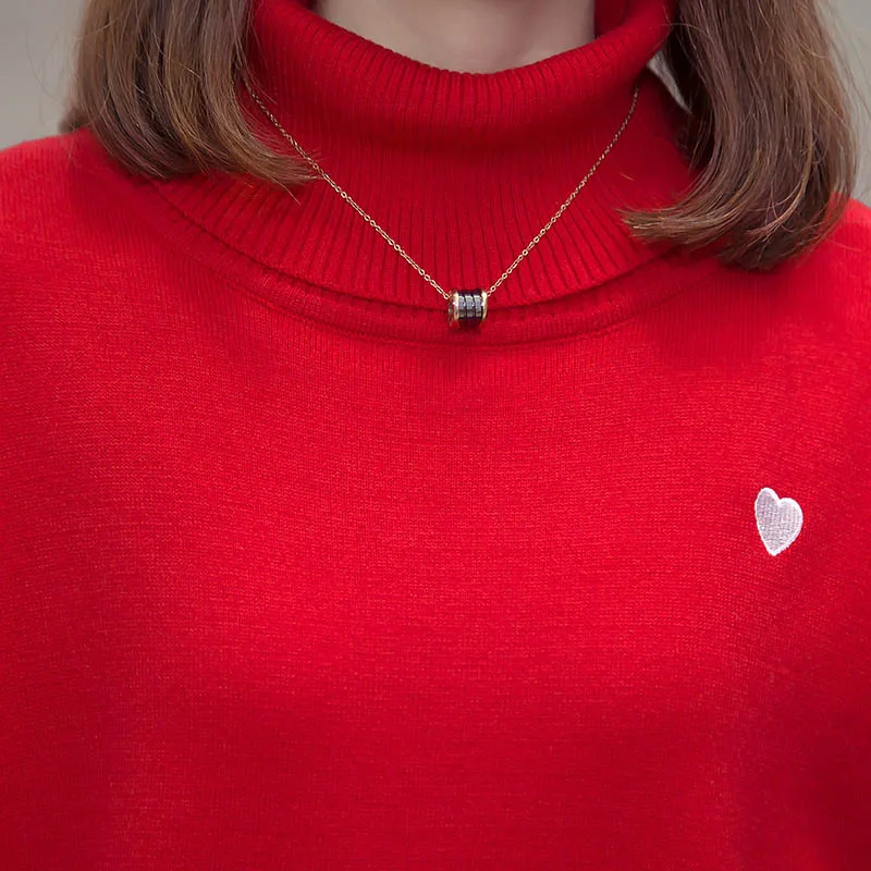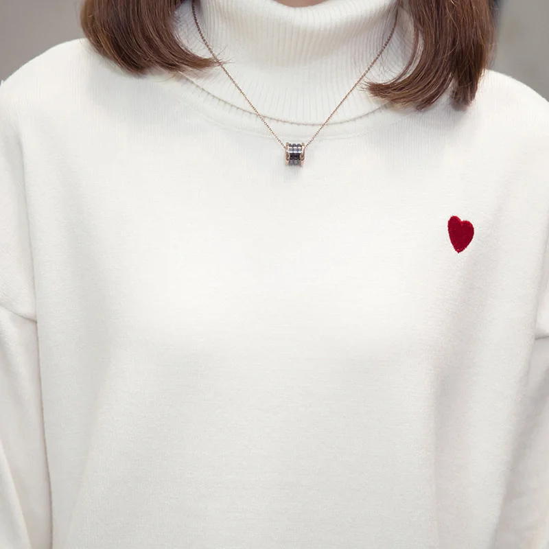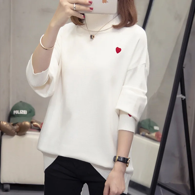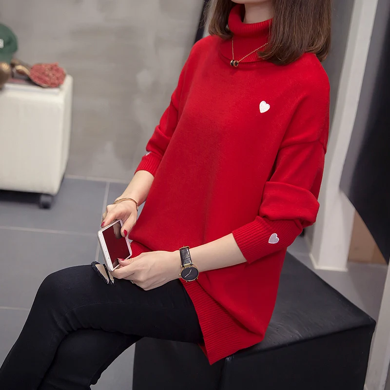 Осенне-зимний модный женский свитер с высоким воротом в корейском стиле, свободный повседневный свитер с длинным рукавом и вышивкой, согревающий женские пуловеры, топы