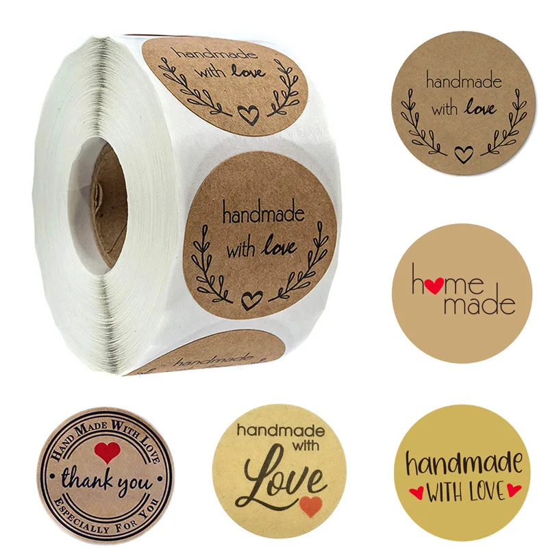 1 дюймовая круглая коричневая крафт-бумага, 500 этикеток в рулоне, читается черными чернилами, ручная работа с любовью, привлекательный дизайн оливковой ветки и Изысканная форма сердца. Каждая наклейка изготовлена из высококачественной коричневой крафт-бумаги. Просто снимите наклейку с рулона и приклейте ее куда угодно. Они могут быть размещены на большинстве чистых и сухих поверхностей, таких как керамика или пластик. Стикер делает вас особенным подарком своими руками и дарит вам приятные ощущения. Идеально подходит для выпечки, герметичных сумок или конвертов в особых ситуациях.