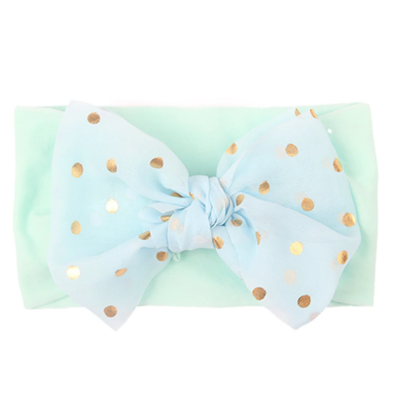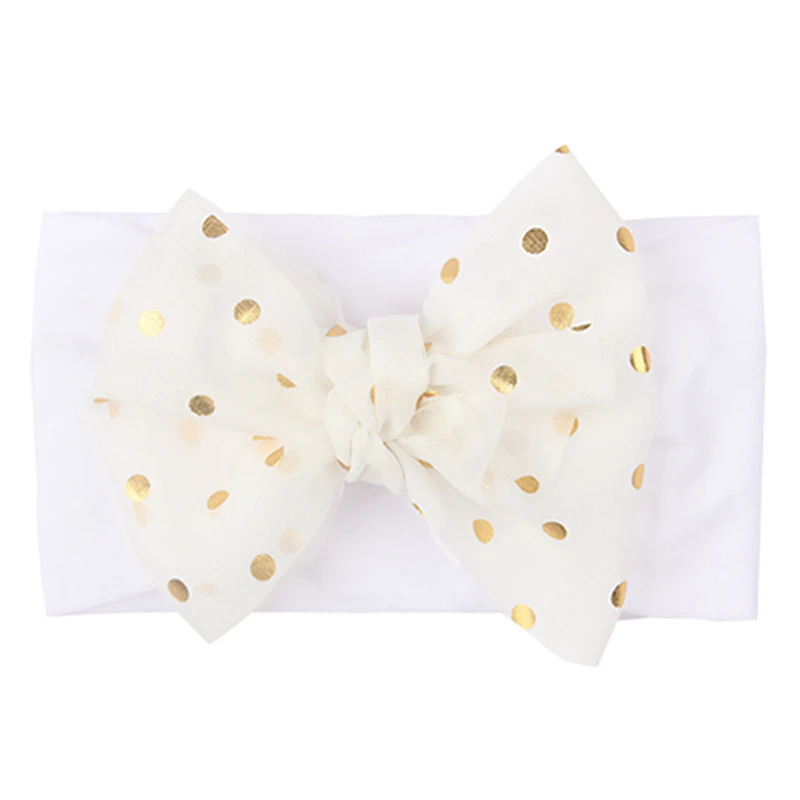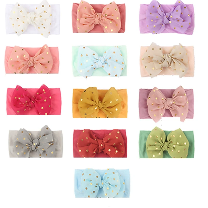 Прекрасный ручной работы кружева бант для маленьких девочек эластичная повязка на голову, модные золотые бабочки в горошек Детские нейлоновая повязка на голову, детская одежда и аксессуары