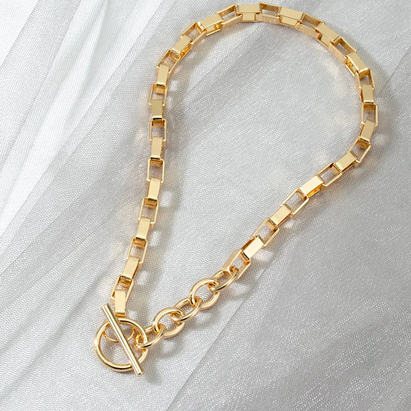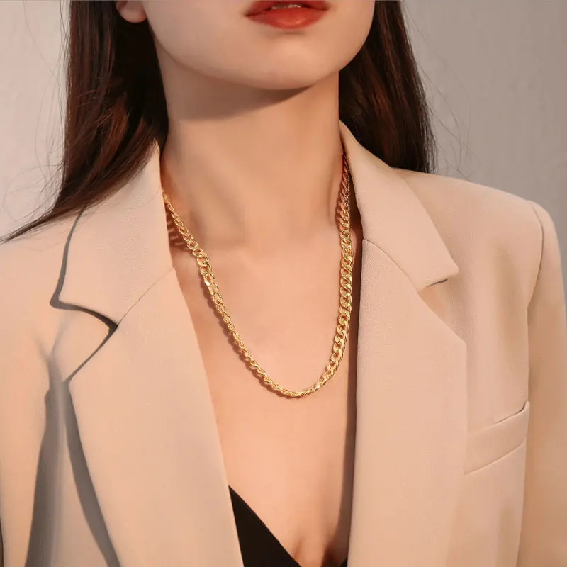 Женская Толстая Поворотная цепь, золотистая массивная цепочка-чокер...