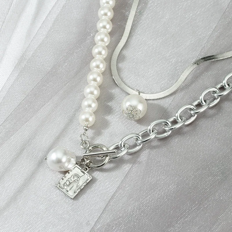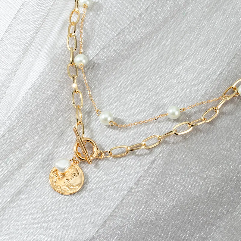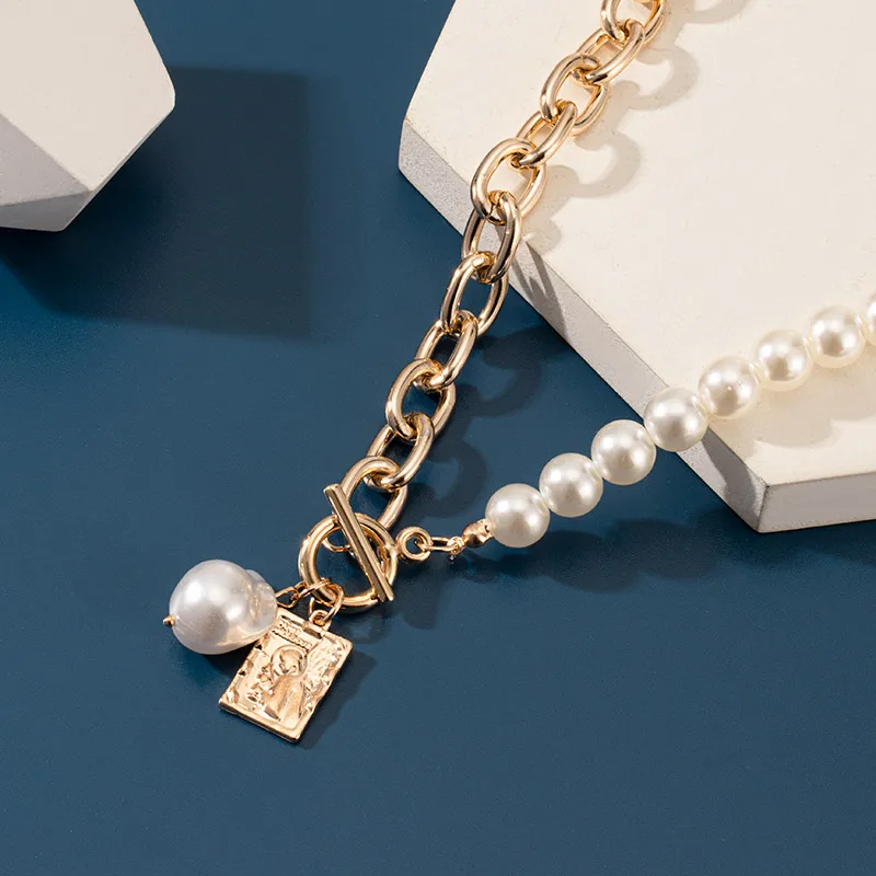 Женское колье с жемчужной цепочкой, винтажное ожерелье с металлической подвеской в виде портрета с замком, ювелирное изделие в стиле хип-хоп, Подарочная бижутерия, 2021