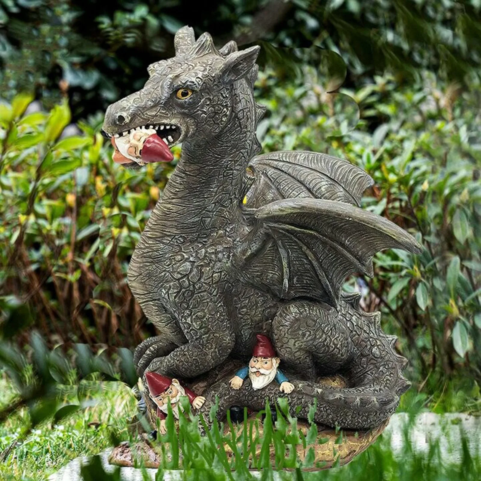 Садовые статуи гнома, уличный декор, динозавр ест гномов, садовый д...