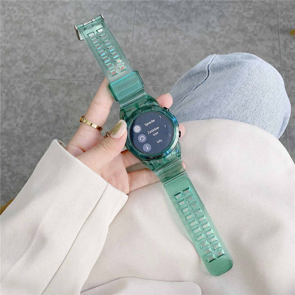 Гибкий силиконовый ремешок с рамкой для Huawei Watch GT 2 46 мм, прозрачный спортивный тонкий ремешок, бампер