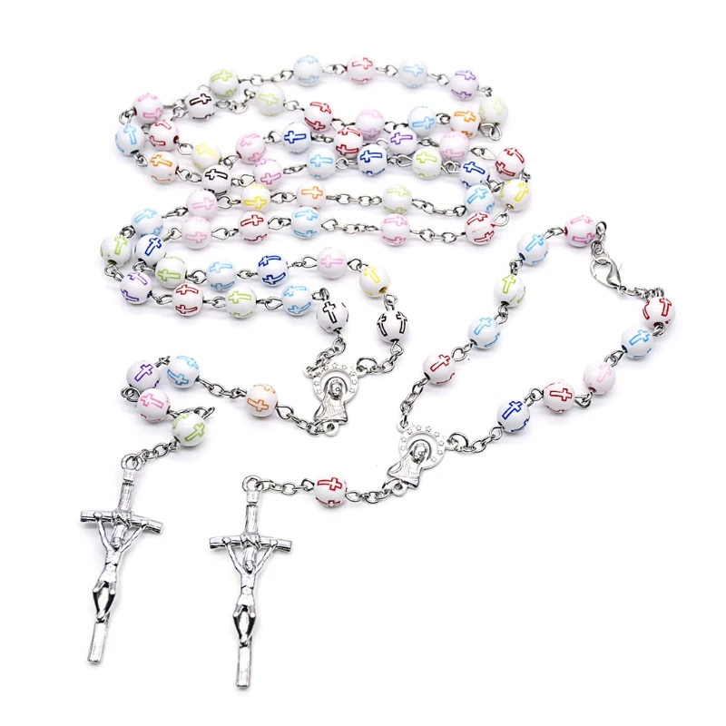 Четки ожерелье Иисус Христос крест кулон бусины для ожерелья Длинная цепочка для мужчин женщин