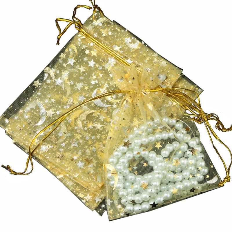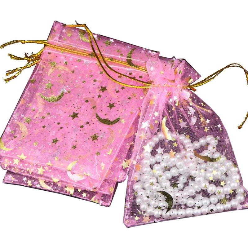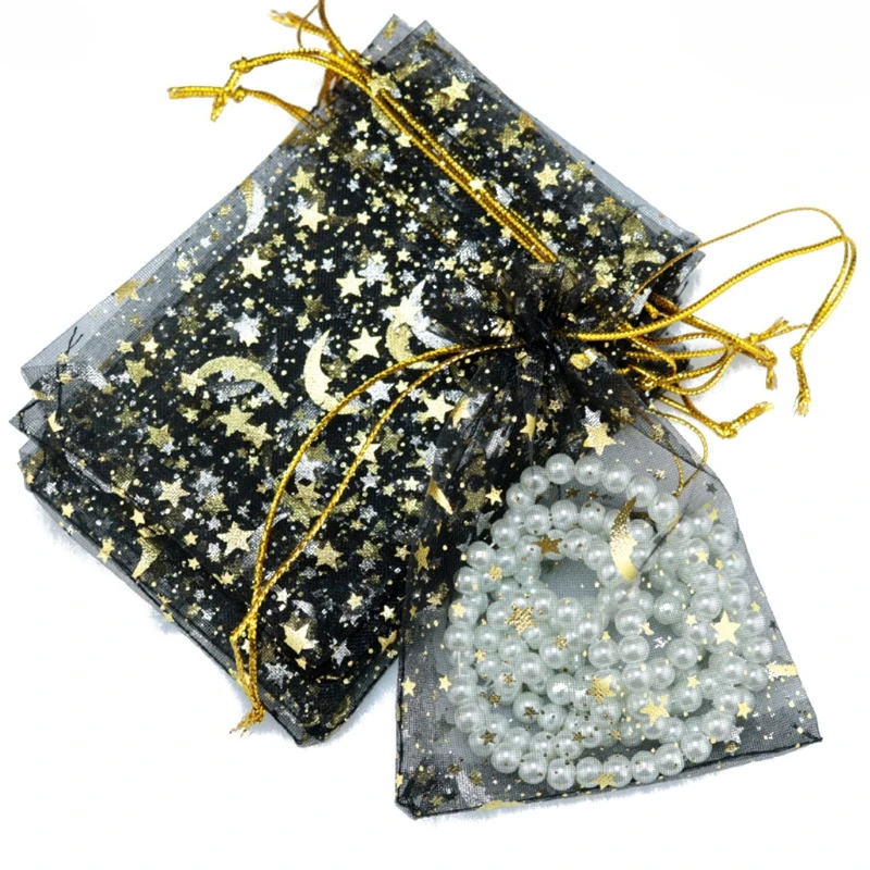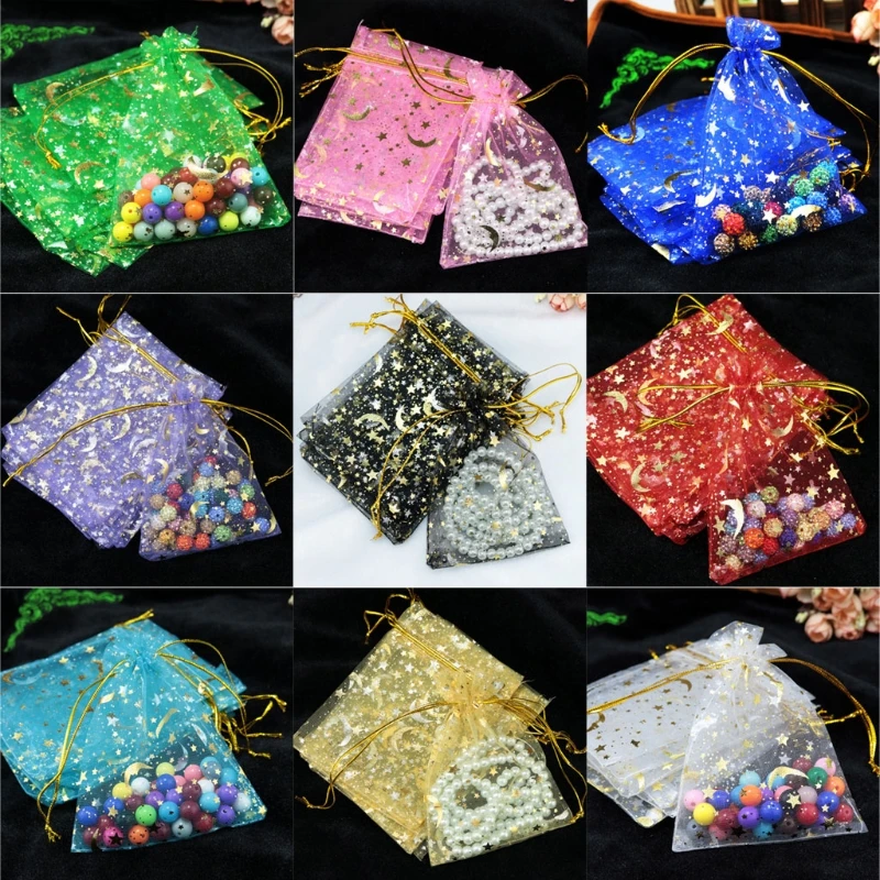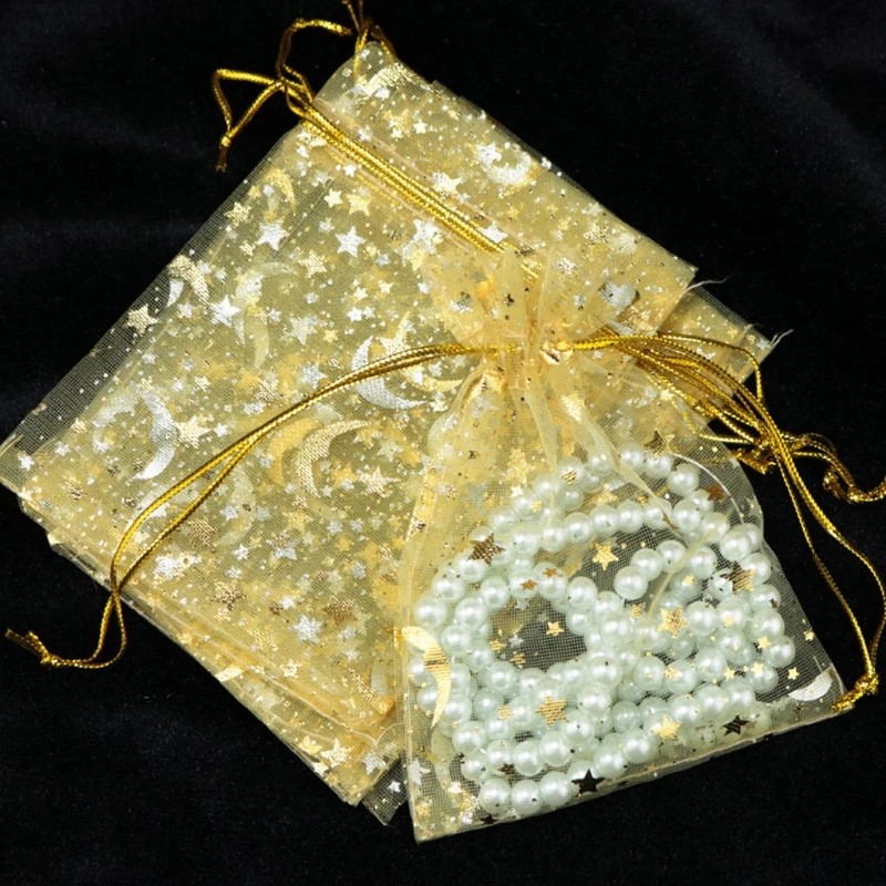 100 шт. луны и звезд шнурок мешки из органзы на шнурке небольшие ювелирные изделия подарочные пакеты для пищевых продуктов, сумки для Свадебная вечеринка ко Дню Святого Валентина