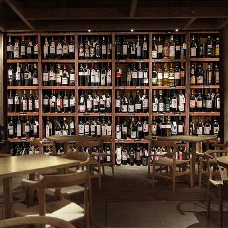 Самоклеющиеся обои, размер под заказ, 3D деревянная полка для бутылок красного вина, настенная полка для гостиной, ресторана, Настенный декор, роспись