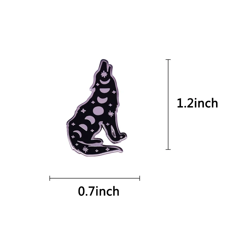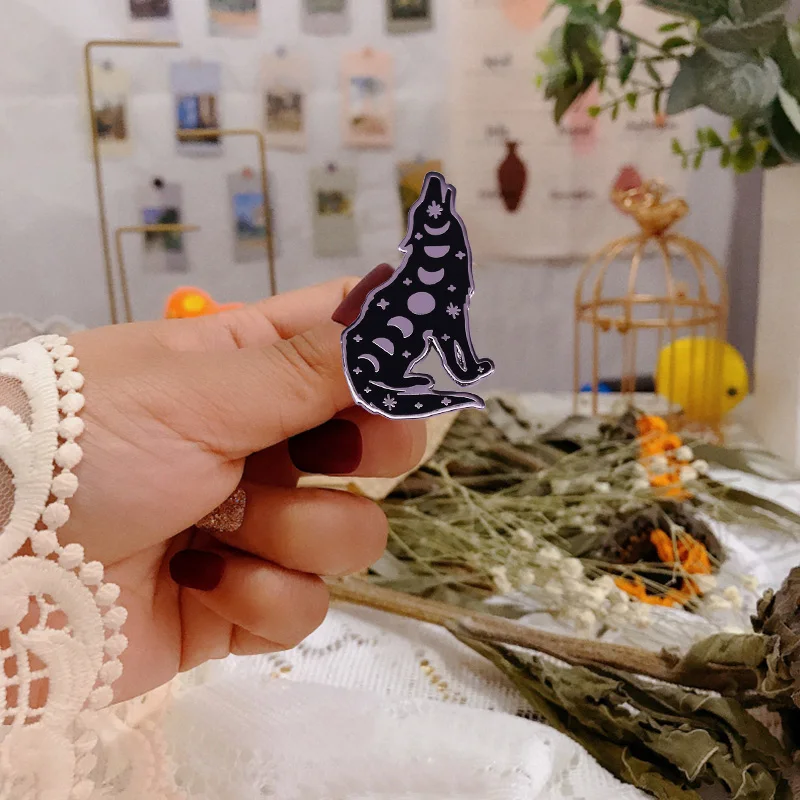 Эмалированная булавка воющего волка, дикое животное, луна, фаза, зн...