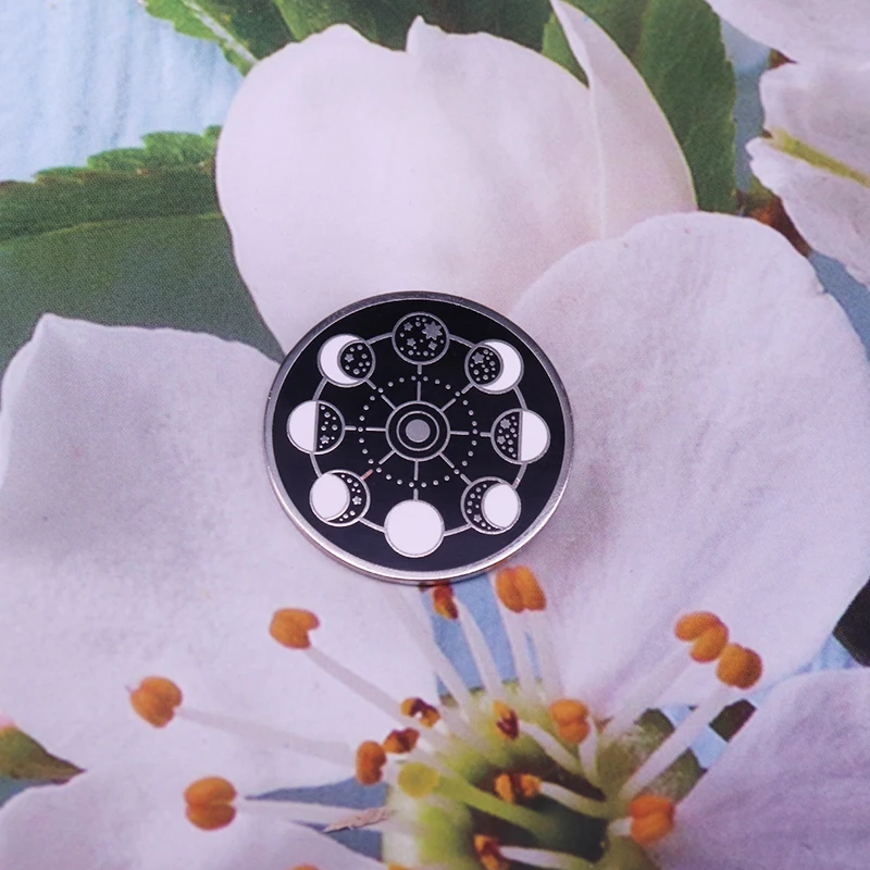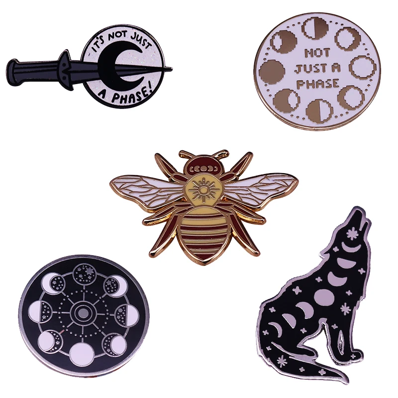 Брошь с эмалью в виде фазы Луны, не только фазы, пчела, божественное лунное затмение, астрология, космическое астрономическое ювелирное изделие, значок для колдовства