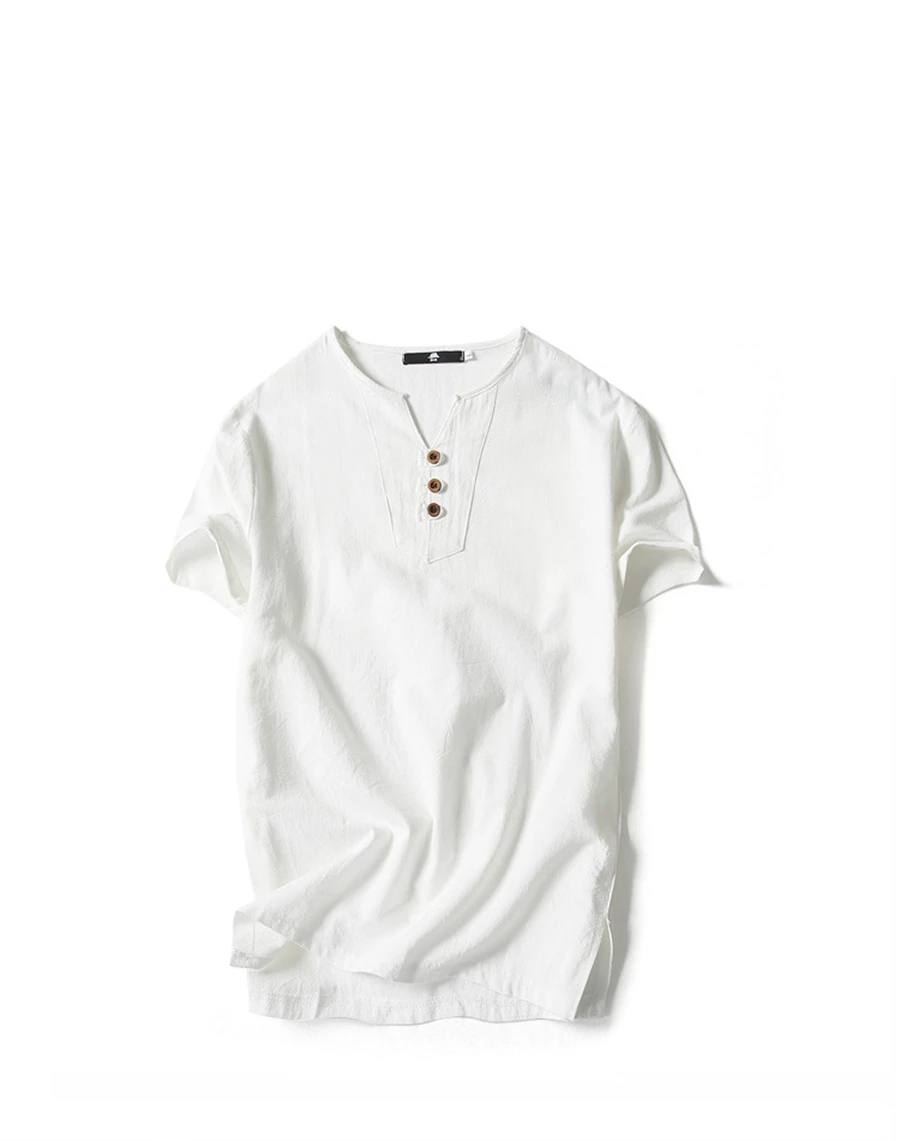 Футболка Мужскаяженская из льна, с коротким рукавом и 3 пуговицами