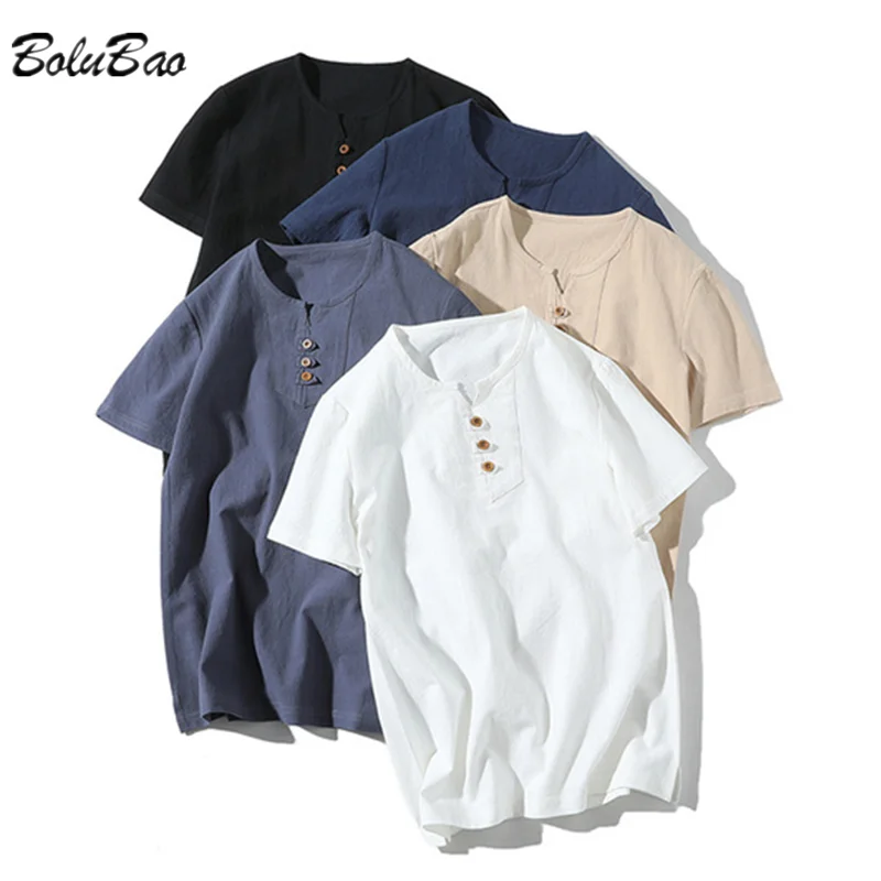 Футболка BOLUBAO мужская с 3 пуговицами, льняная Простая Повседневная рубашка с коротким рукавом, в японском стиле, модная футболка для пар, на лето