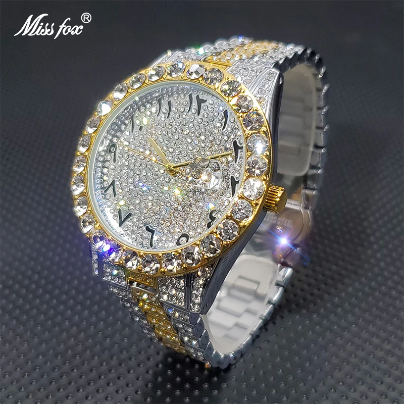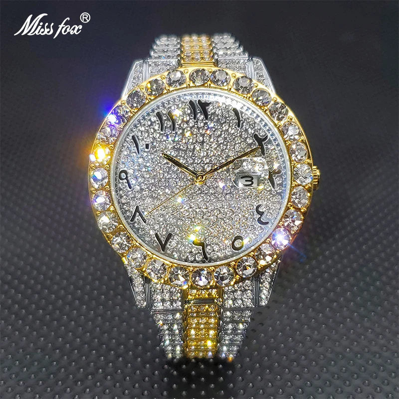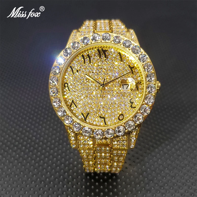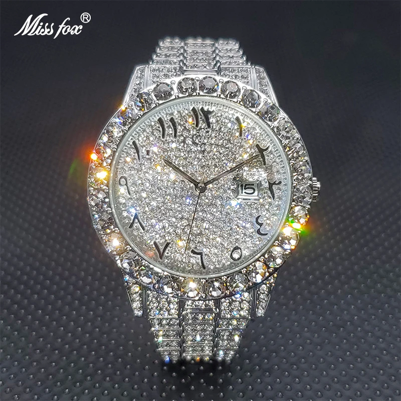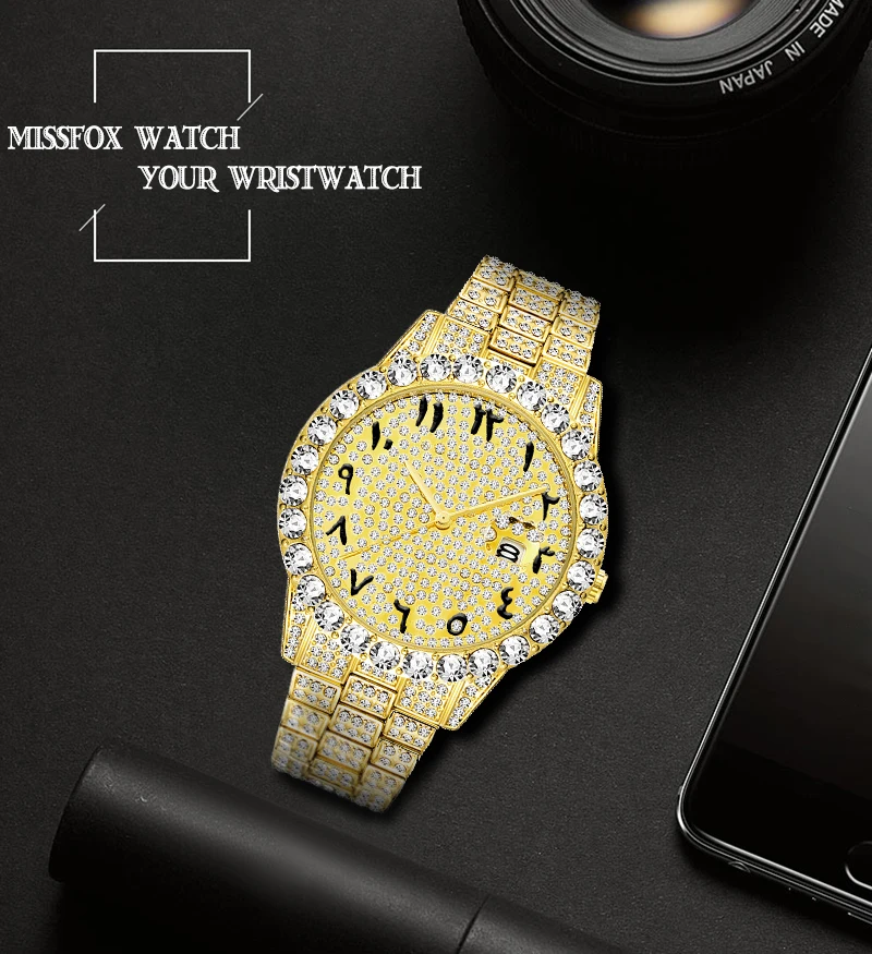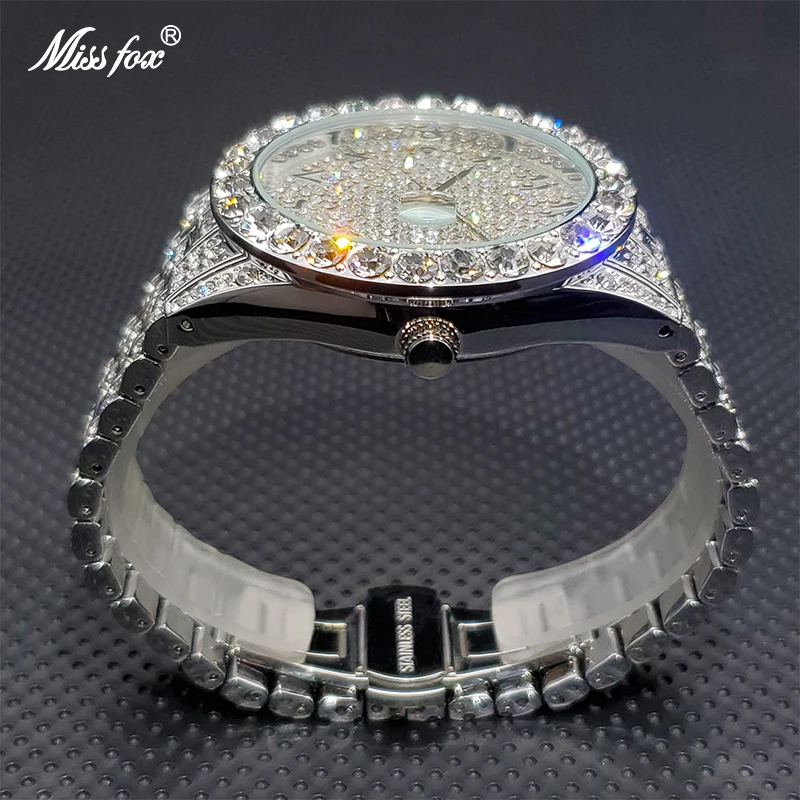 Часы MISSFOX с бриллиантами для мужчин, Роскошные водонепроницаемые аналоговые кварцевые часы с календарем, мужские трендовые товары, 2021