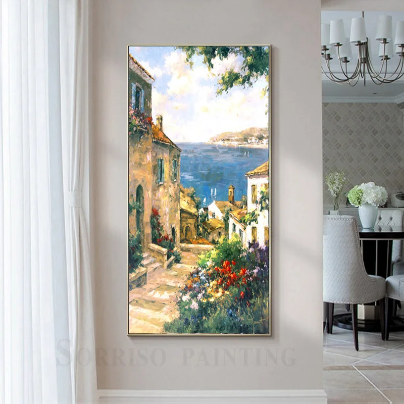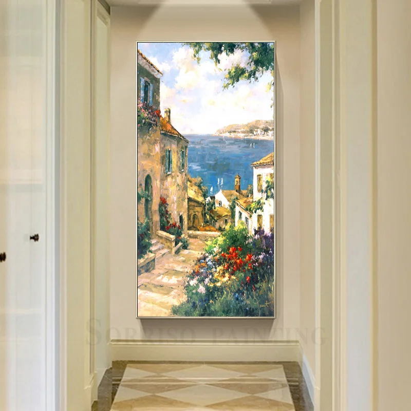 Европейский ретро пасторальный пейзаж, холст, картина, коридор, нас...