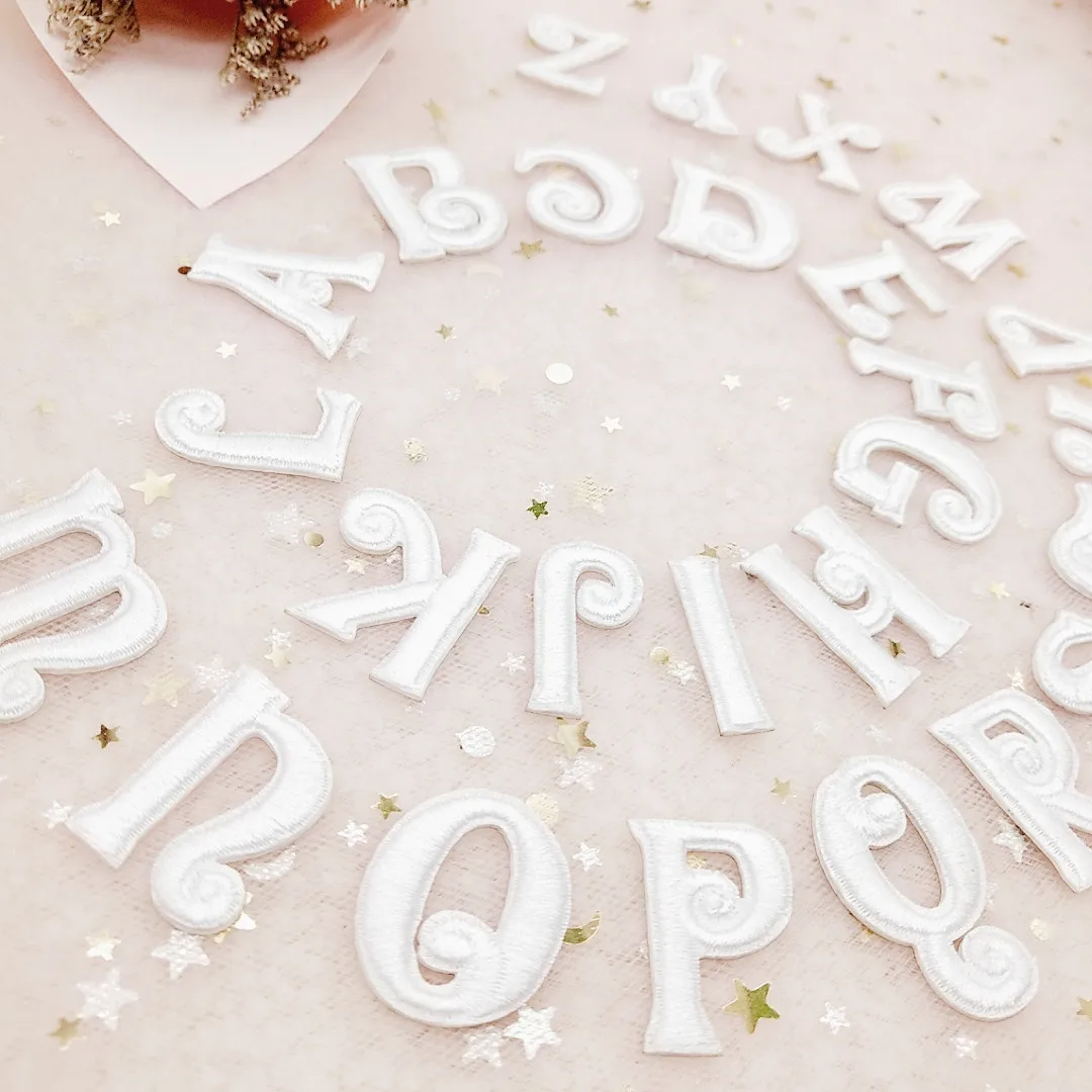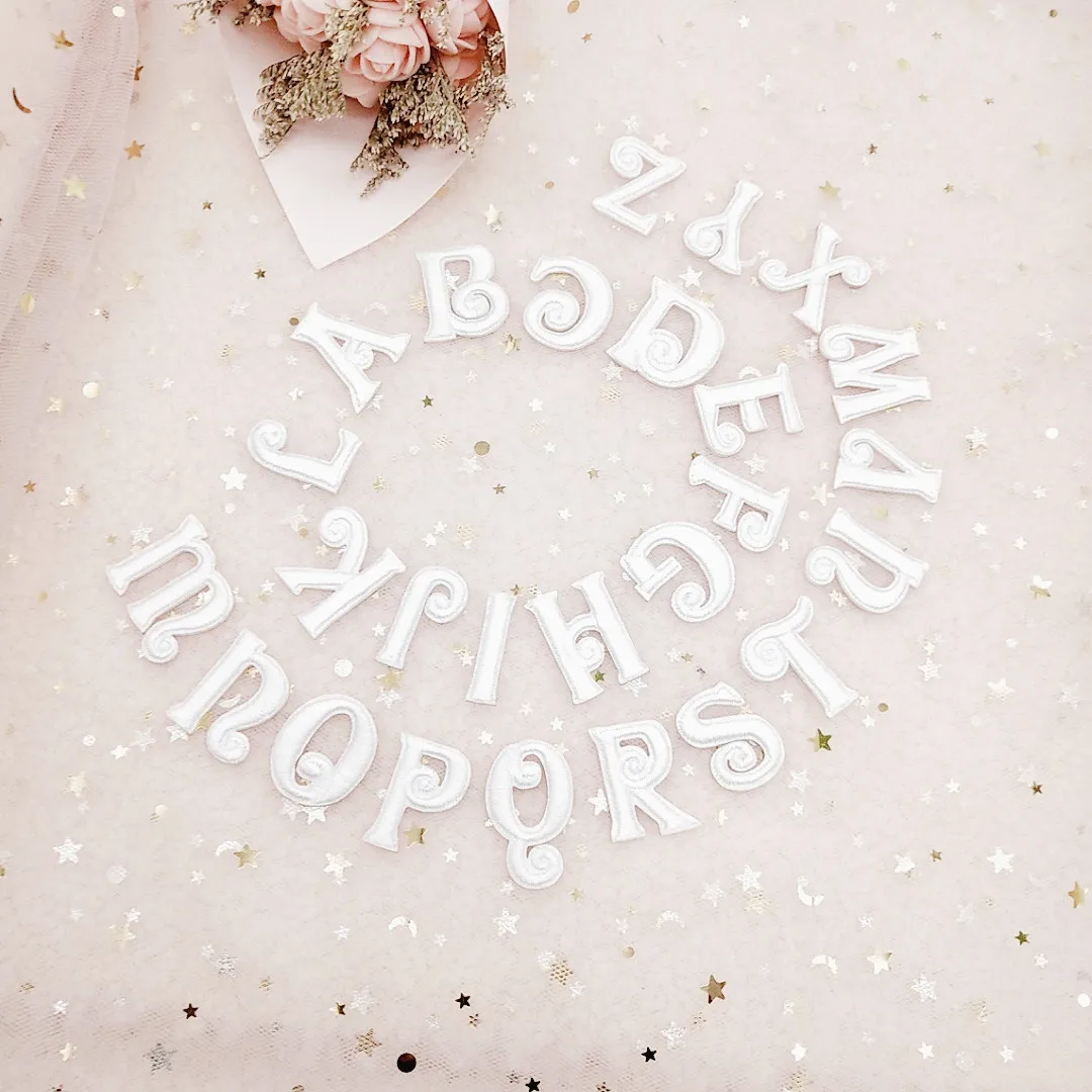 Белые джинсы с вышитыми буквами приклеивающиеся утюгом нашивки с аппликацией в виде алфавита нашивки; Спортивный костюм для детей; Одежда сумки швейная бейдж патч, аксессуары