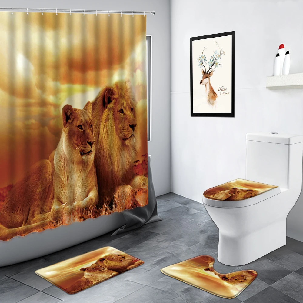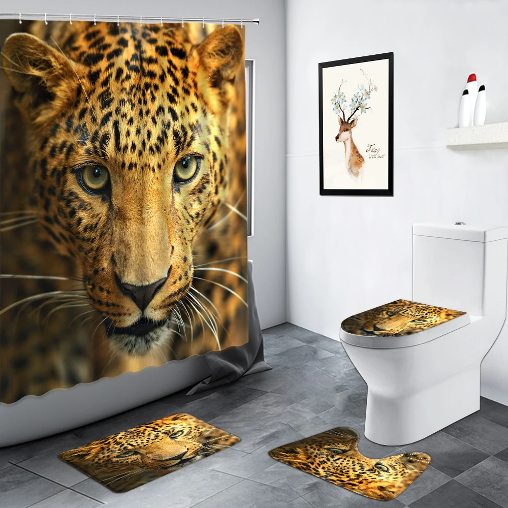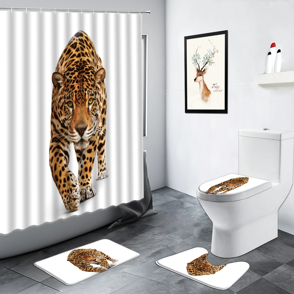 Дикий Животные леопарда душ Шторы Тигр Лев волк бурый медведь Ванная комната декор двери коврики Нескользящие Коврики для туалета крышка комплекты ковриков для ванной комнаты