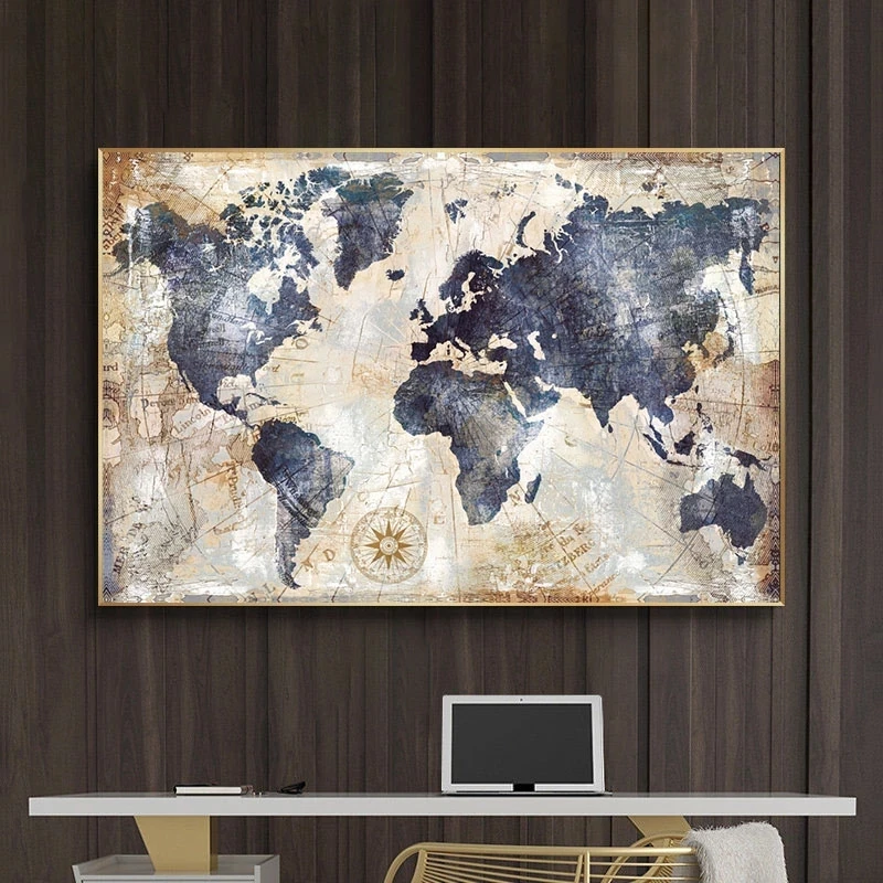 Абстрактная винтажная карта мира модульная Настенная картина на холсте картина плакаты современная домашняя картина для гостиной офиса Декор
