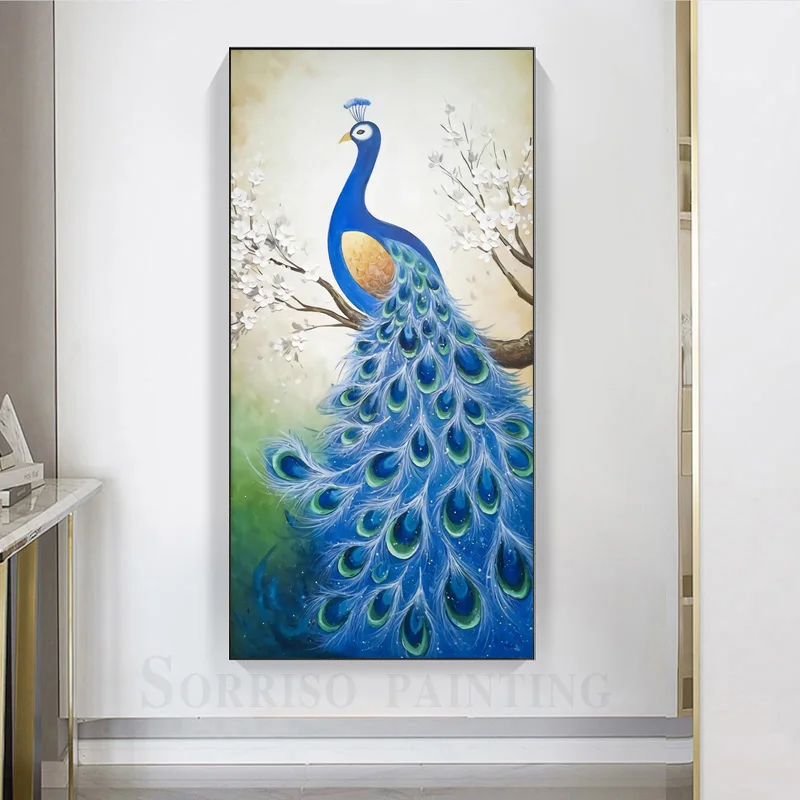 Картина маслом на холсте, 3 шт., Европа, Классический Павлин, ваза,...