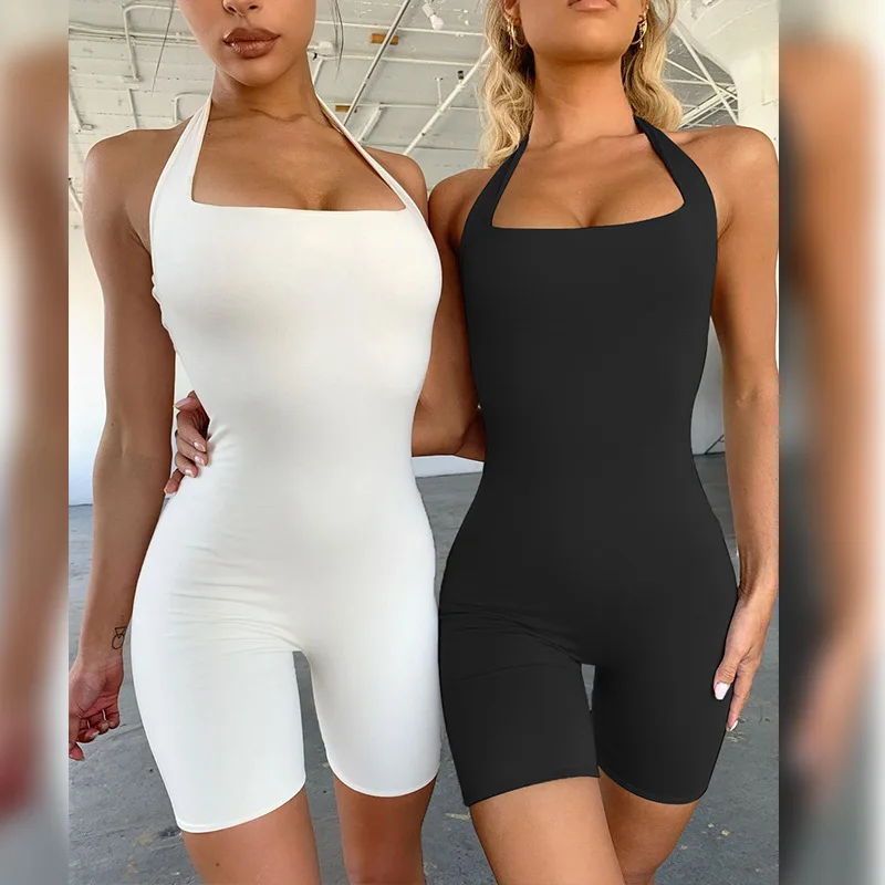 Сексуальный цельный боди-шорты с лямкой на шее, спортивный костюм д...