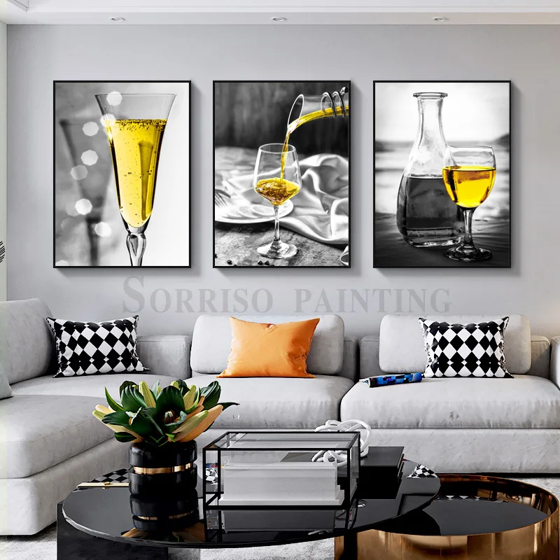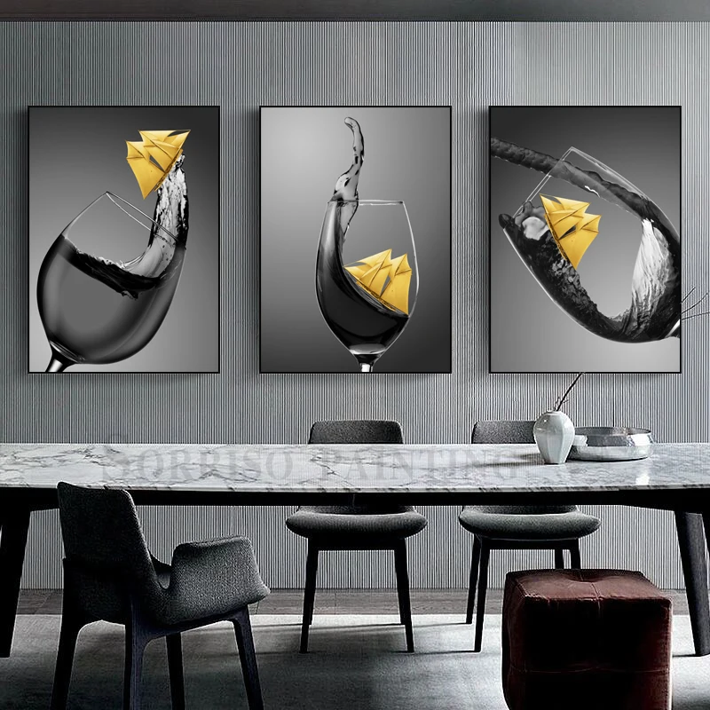 Желтая парусная лодка в винном бокале, Современная Картина на холсте для столовой в скандинавском стиле, искусство, принты, картины, домашний декор