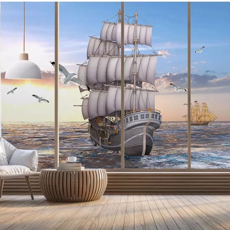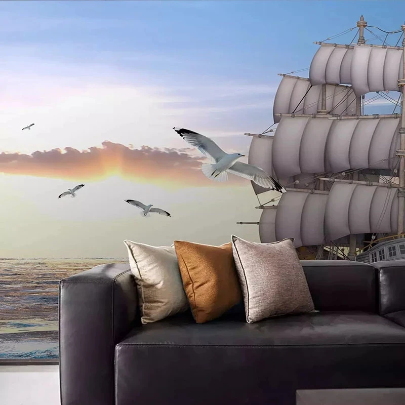Настенные декоративные 3D-обои, самоклеящиеся водонепроницаемые обои с изображением морского восхода и пейзажа, для гостиной, спальни