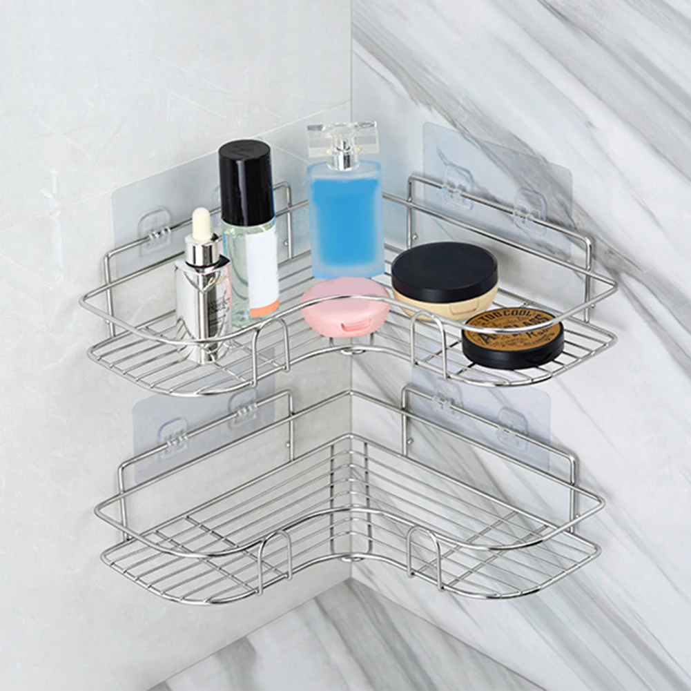 Стойка для хранения из нержавеющей стали, прочная треугольная настенная полка певицы без отверстий, держатель для ванной, кухни, спальни