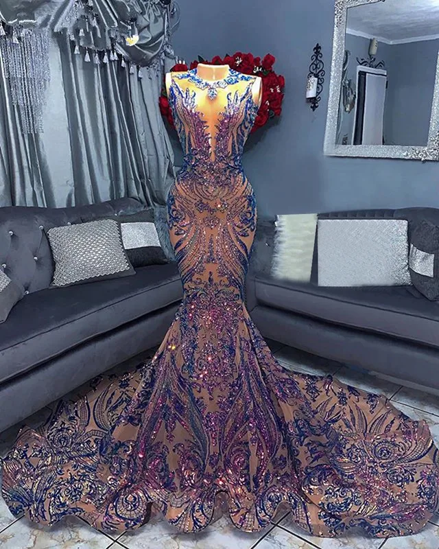 Блестящие фиолетовые длинные платья для выпускного вечера 2022, сексуальные африканские женские черные платья с блестками в стиле русалки для торжества, выпускного вечера, вечеринки в стиле знаменитостей