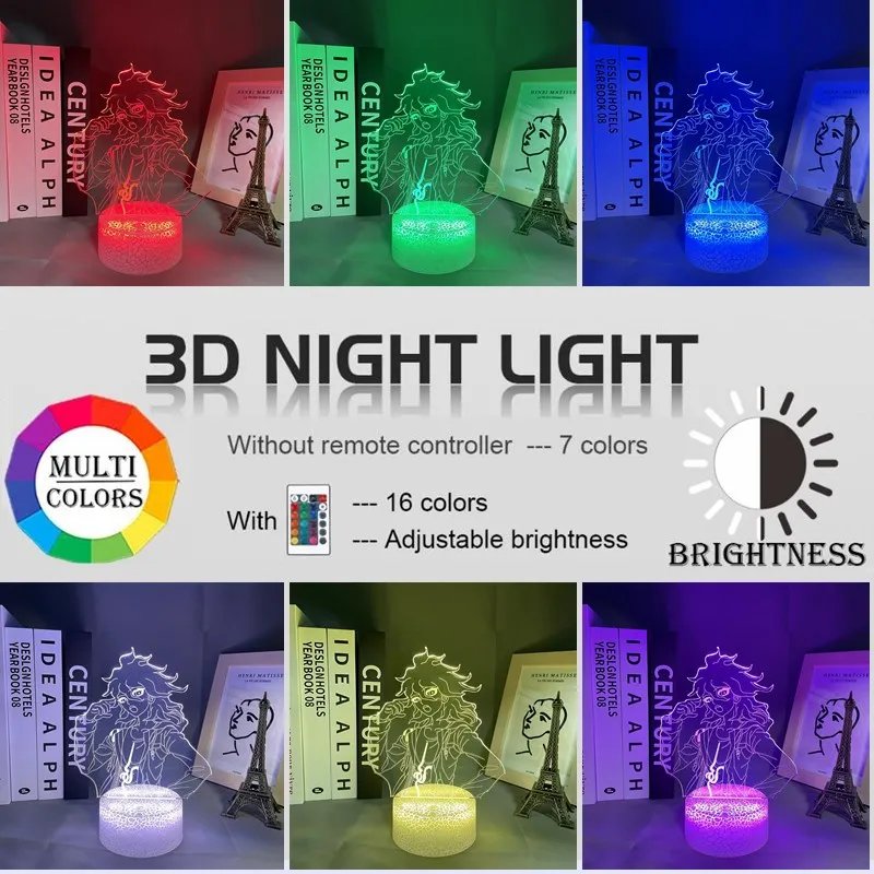 3d Светодиодная аниме-фигурка Danganronpa Nagito Komaeda, настольная лампа для украшения детской спальни, ночсветильник, подарок на день рождения, украшение комнаты