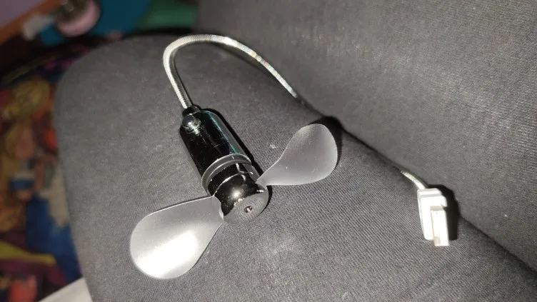 Отличная штука, удобно работать в жару с ноутом, и в поездку взять с повербанком. Не громкий, дует в меру - ощутимо, но не сдувает. Очень рекомендую!