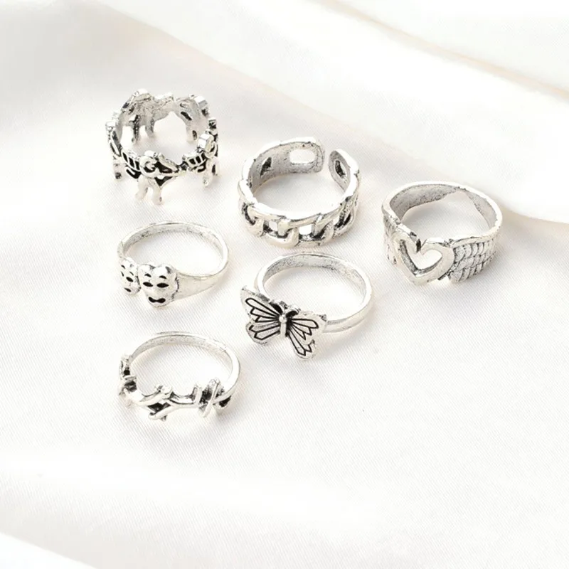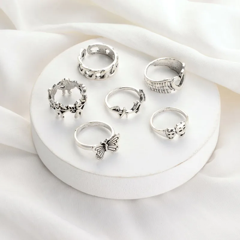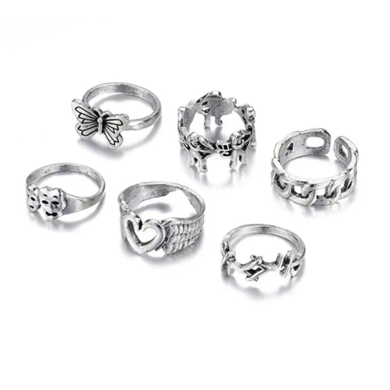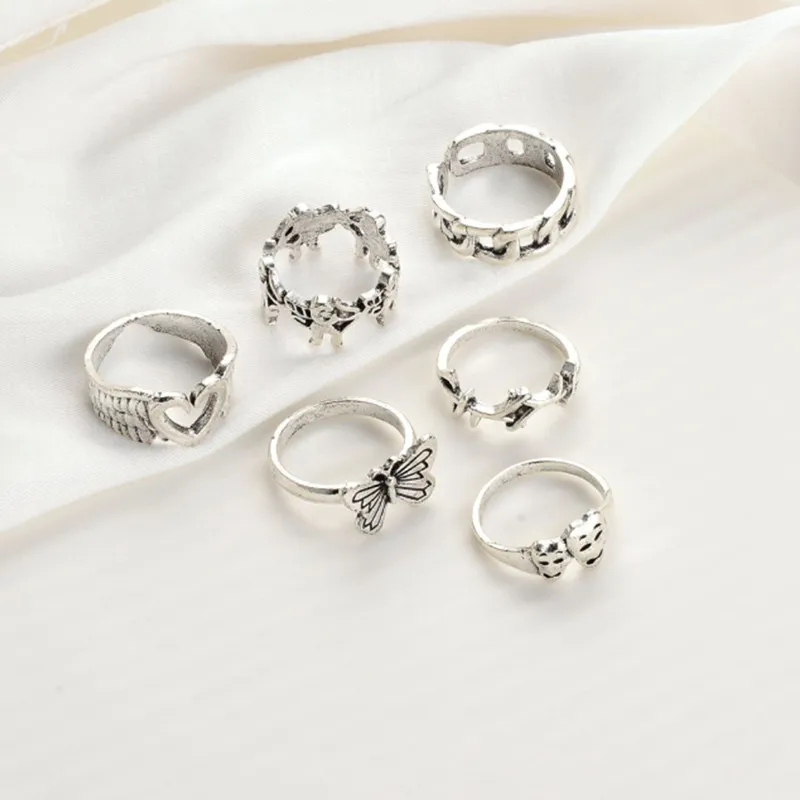 Набор колец в богемном стиле с блестящими кристаллами, бабочками, г...