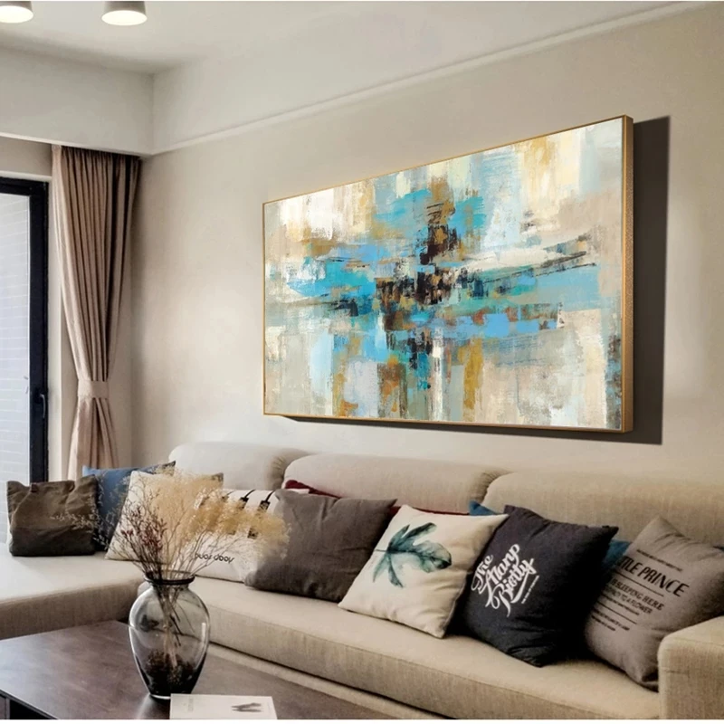 Абстрактный пейзаж, картина маслом на холсте, большие настенные художественные синие плакаты и принты, декоративная картина на стену для гостиной, домашний декор