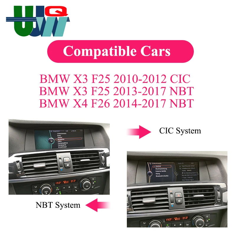 BMW X3 F25 X4 F26 2011-2013 (4 контактный LVDS CIC Системы)BMW X3 F25 X4 F26 2014-2016 (6 контактный LVDS НБТ Системы)BMW X3 F25 X4 F26 2016-2018 (6 контактный LVDS EVO Системы)Если ваш автомобиль имеет систему EVO, пожалуйста, отправьте нам сообщение перед заказом