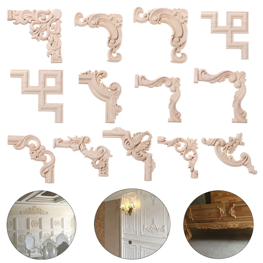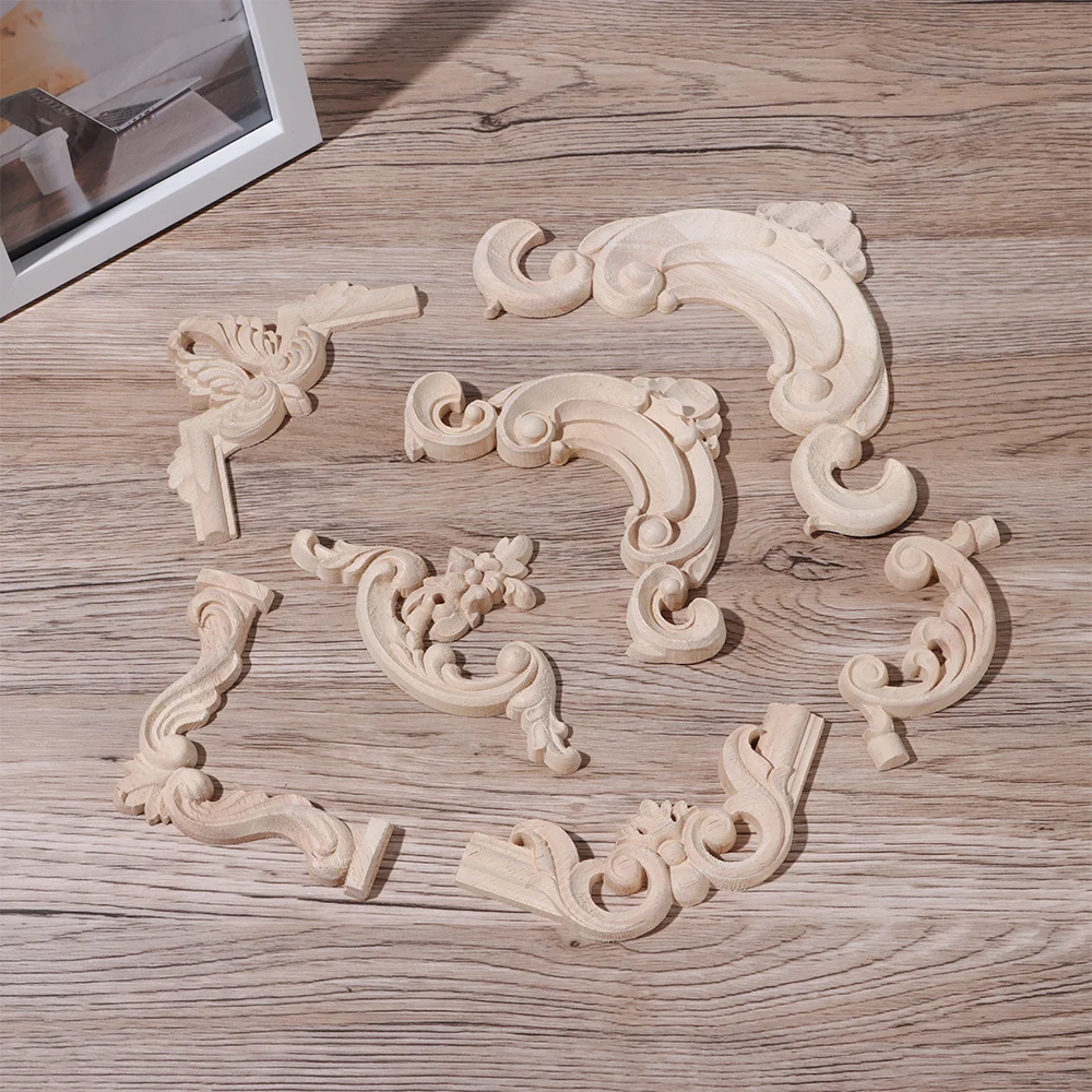 Декоративные аппликации из дерева резная волна цветок Onlay наклейка домашняя мебель для украшения поделок Неокрашенная дубовая деревянная угловая аппликация