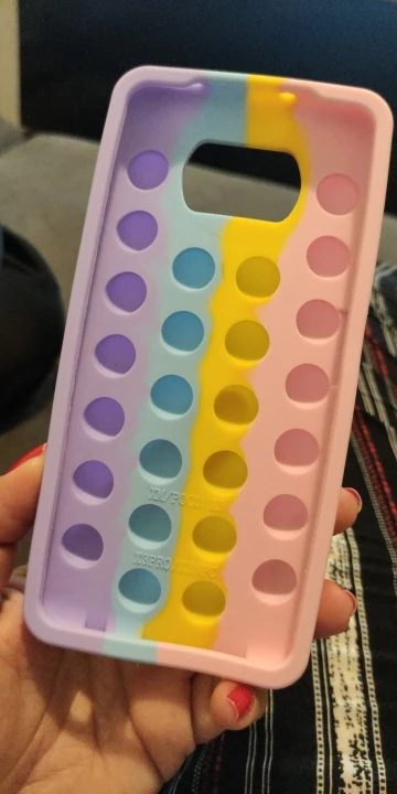 Спасибо! Получила чехол , всё как на фото . Дочь очень довольна, только сказала , что эти пупырки не остаются вдавленными просто нажимаешь и а то же положение. С продавцом не общались.