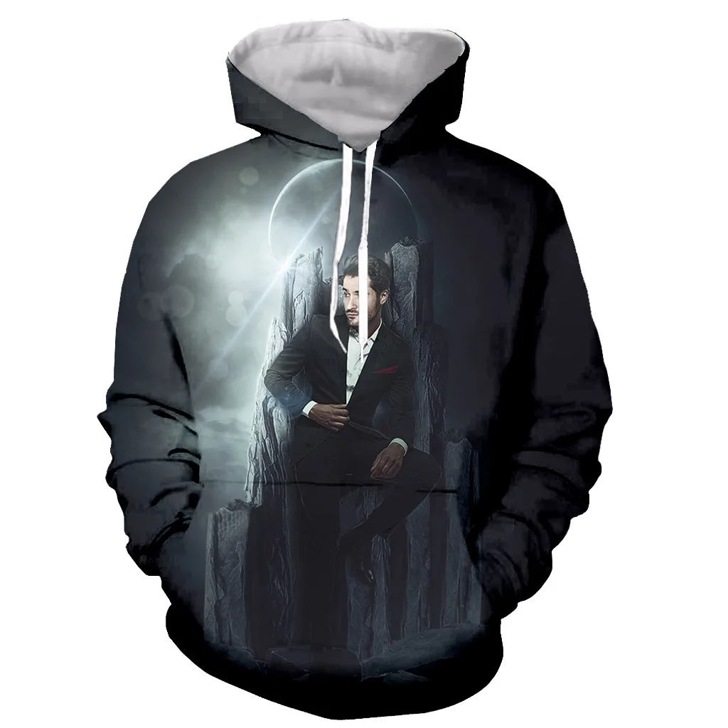 Новинка, забавные модные толстовки с длинным рукавом и 3D-принтом Lucifer Morningstar, свитшоты, куртки, мужские и женские прямые поставки