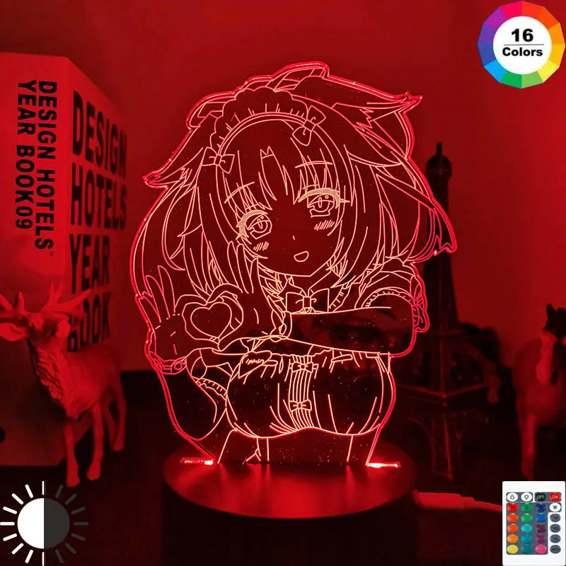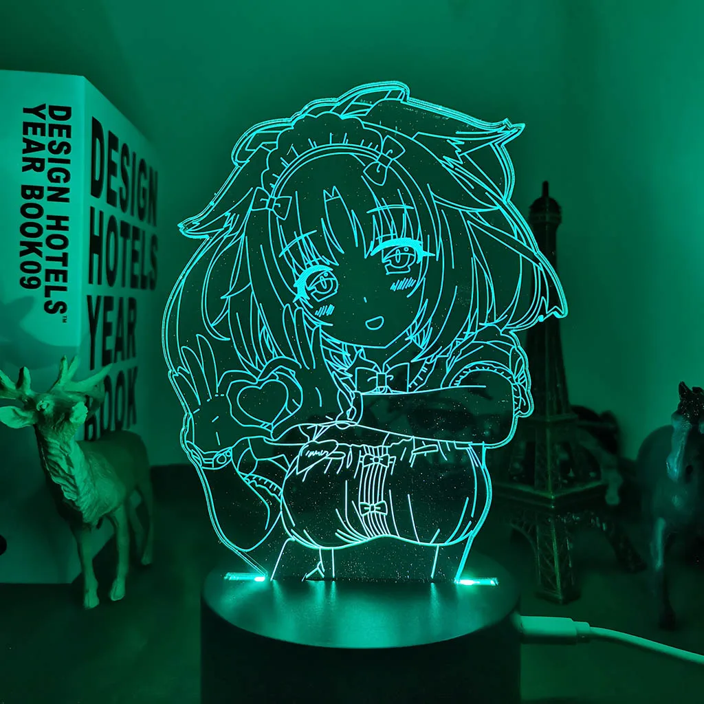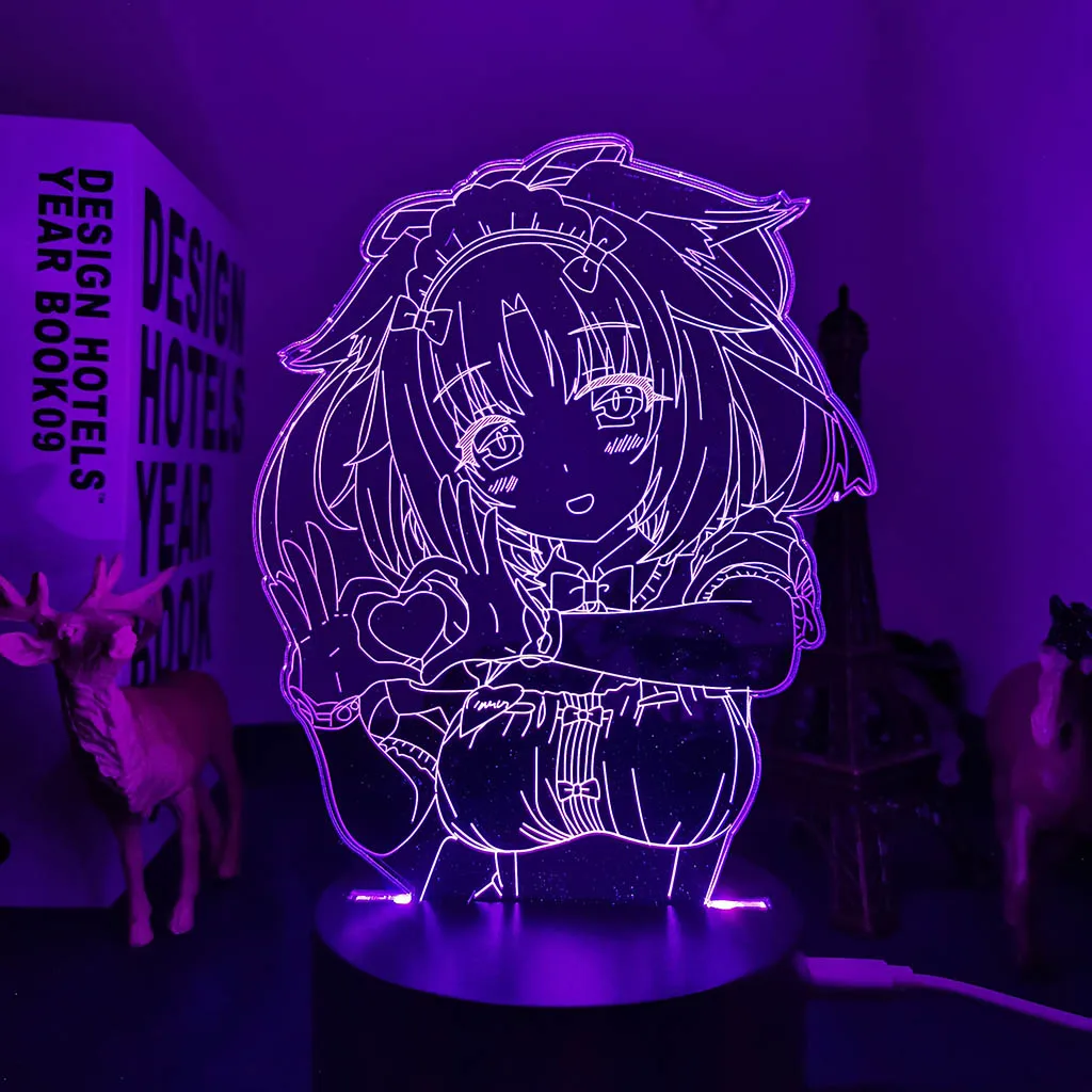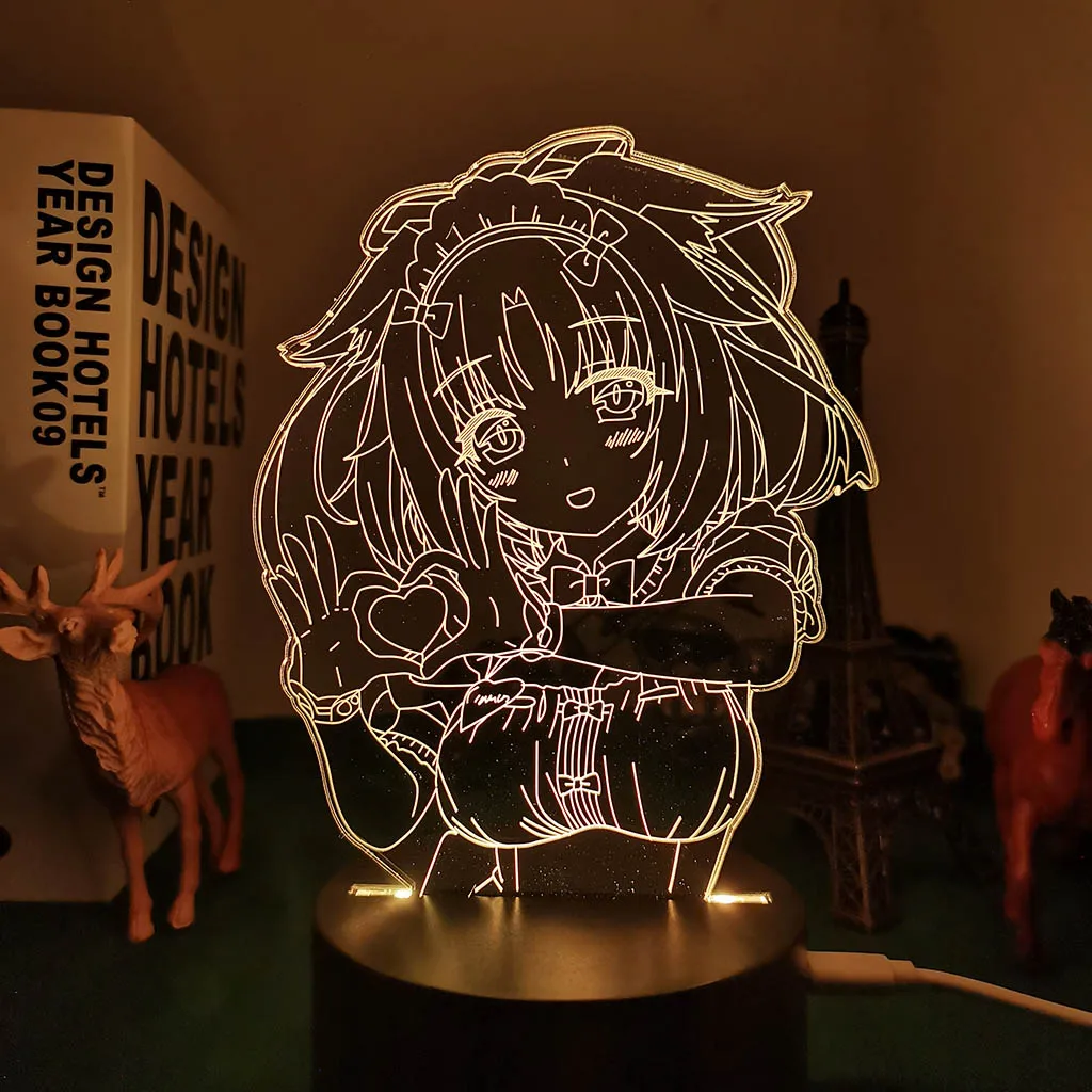 Светодиодный ночсветильник с корицей в стиле аниме Nekopara, украшение для спальни, подарок на день рождения, ночсветильник, настольный 3d-светильник накаливания уэйфу, некопара