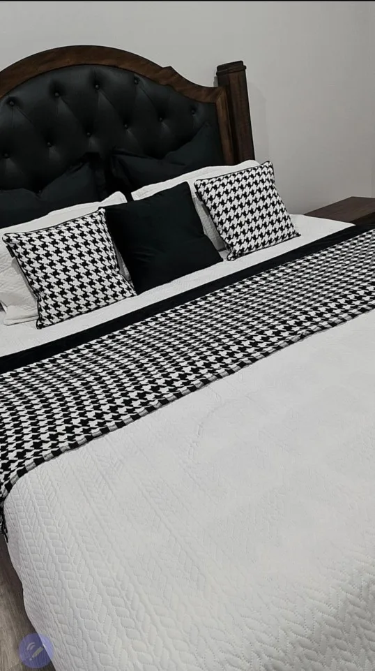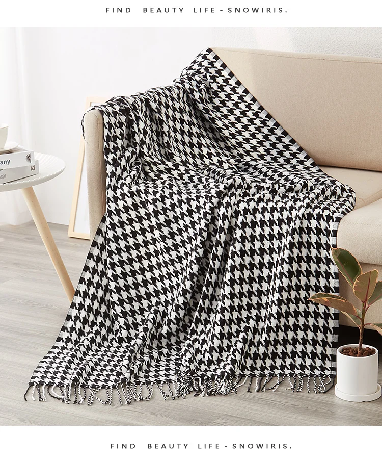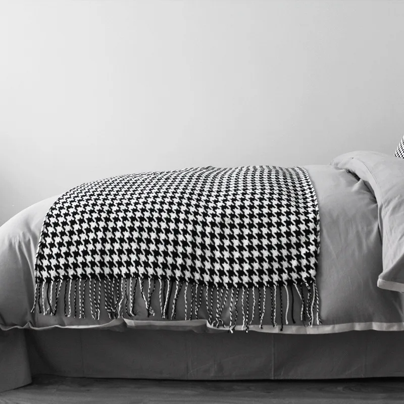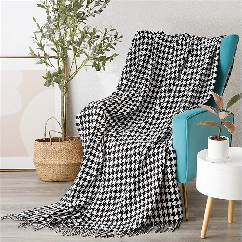 Покрывало для дивана, классическое, черно-белое, с рисунком гусиная лапка, с кисточками, декоративное покрывало для дивана, для кровати