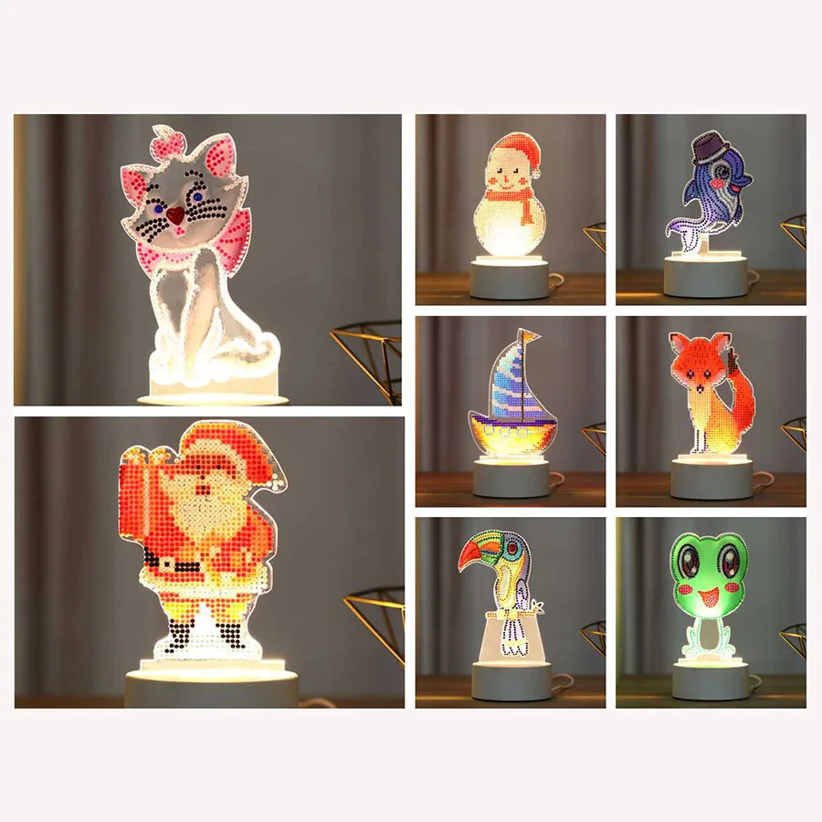2021 новая 5D алмазная живопись, светодиодная Ночная лампа, ламсветильник, мультяшное животное, медуза, картина стразы, ручная работа, подарок