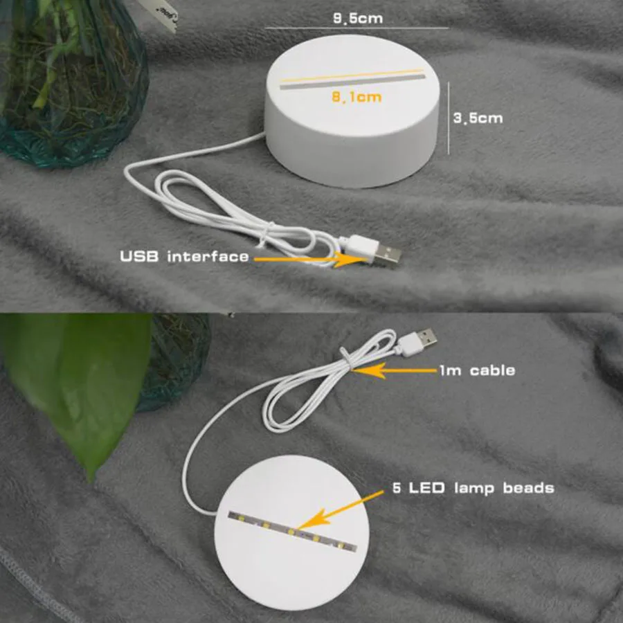 Спецификация продукта:Название: 5D акриловый ночной СветильникМатериал: акрилСветильник; Цвет: теплый белыйМощность: 3 ВтИсточник питания: USB кабельПосылка Вес: 0,40 кгПосылка: 20*15*15 см
