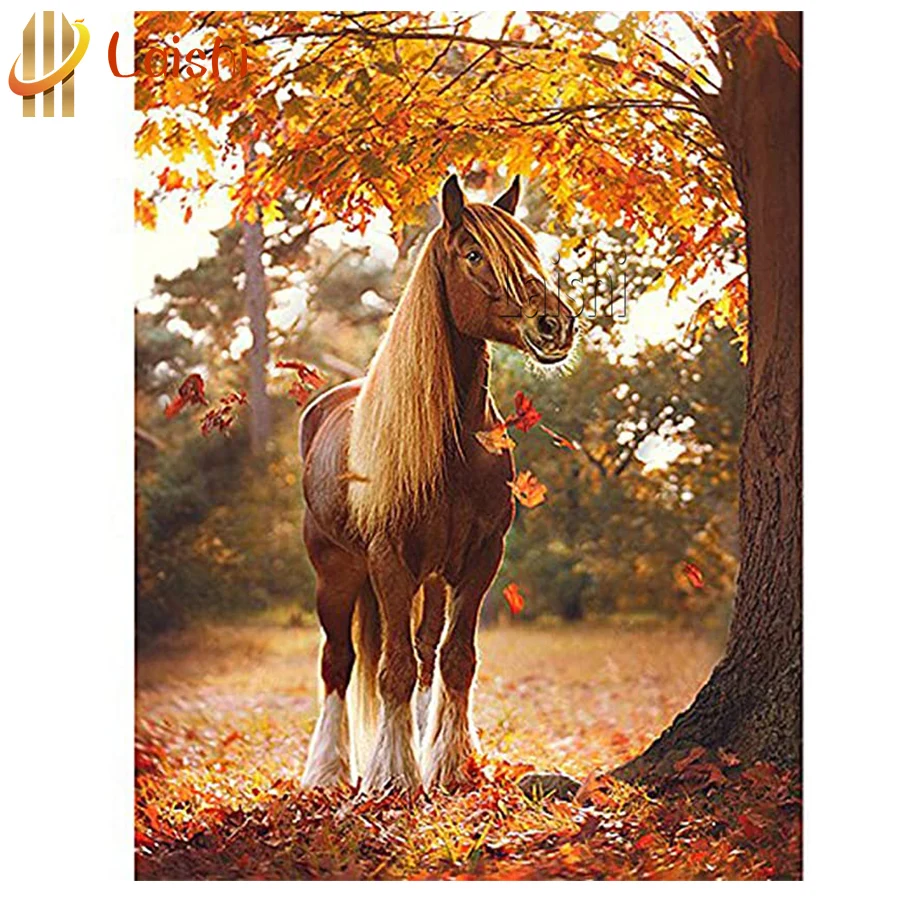 3D картина стразы, мозаика, кленовый лист, лошадь, природный пейзаж, алмазная живопись, распродажа, хрустальные бусины, Полная работа, домашний декор
