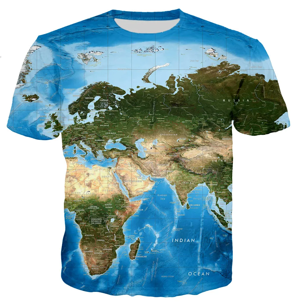 Футболка с картой мира для мужчин и женщин, Повседневная футболка с 3D принтом в стиле Харадзюку, уличные топы, Прямая поставка