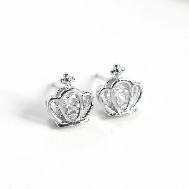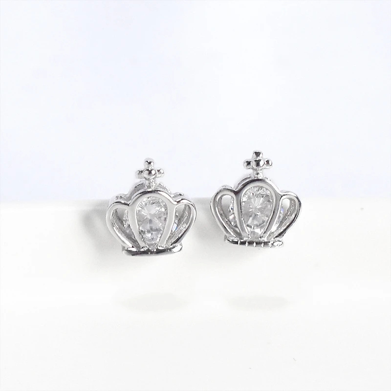 LKO настоящее серебро 925 пробы милые блестящие серьги-гвоздики с кристаллами для женщин принцесса корона серьги-гвоздики для девочек вечерние ювелирные изделия подарки
