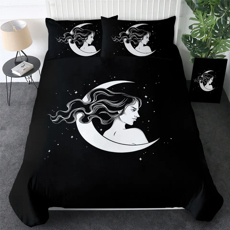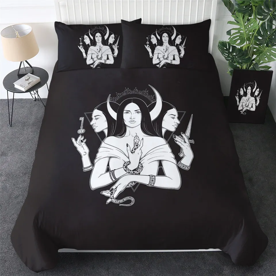 Комплект постельного белья BeddingOutlet с ведьмой, колдовские пододеяльники, постельное белье со змеей, волшебная луна, черное покрывало для ногтей, 3 шт.