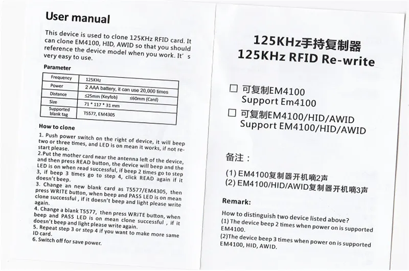 6. Может копировать только RFID карты 125 кГц.