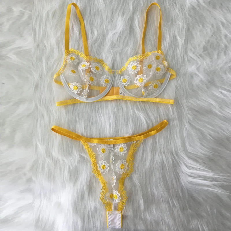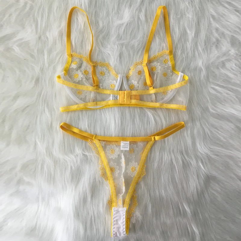 Горячая новинка женское сексуальное нижнее белье с вышивкой желтыми...