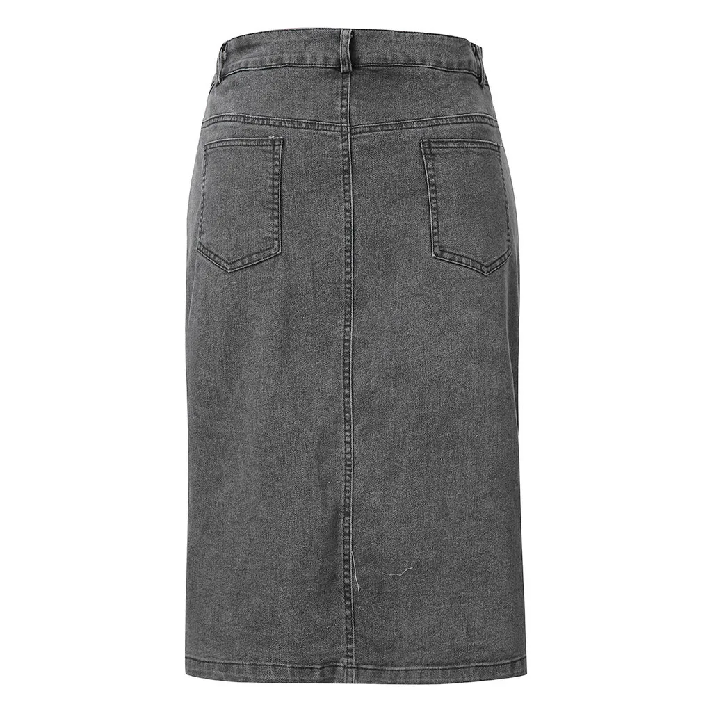 Женская модная джинсовая юбка, юбка с разрезом спереди и разрезом, ...