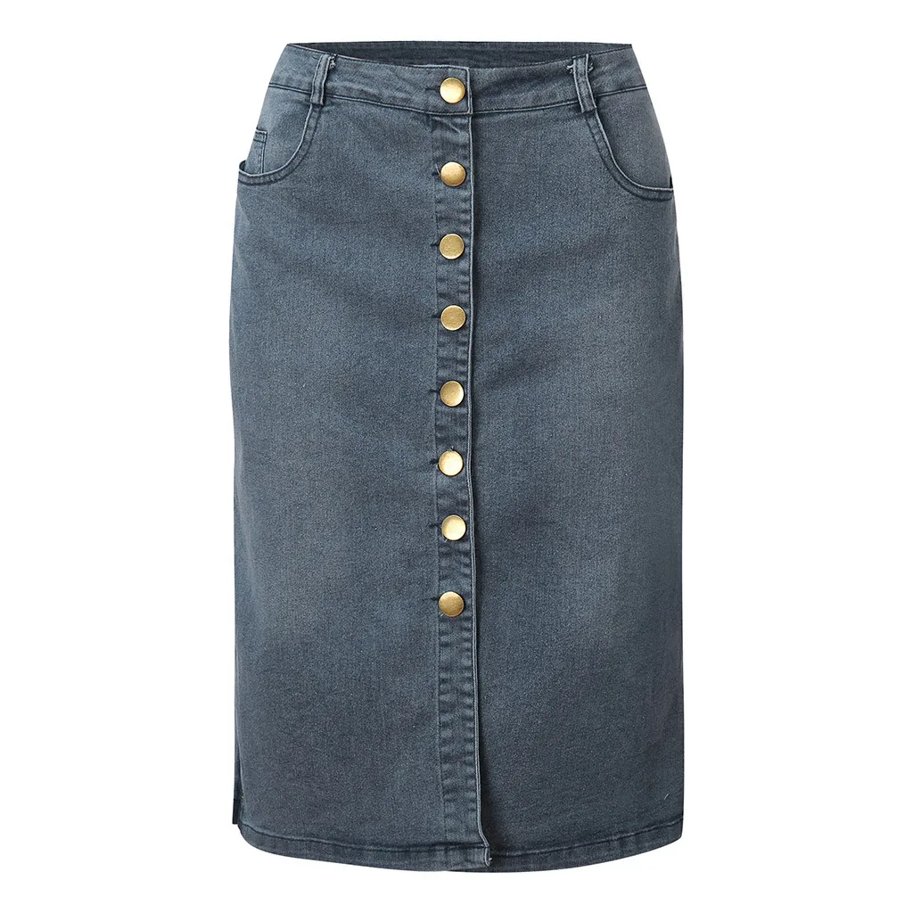 Повседневная джинсовая юбка с завышенной талией, на пуговицах, средней длины, модель 2022 года, ретро, облегающая Сексуальная джинсовая юбка