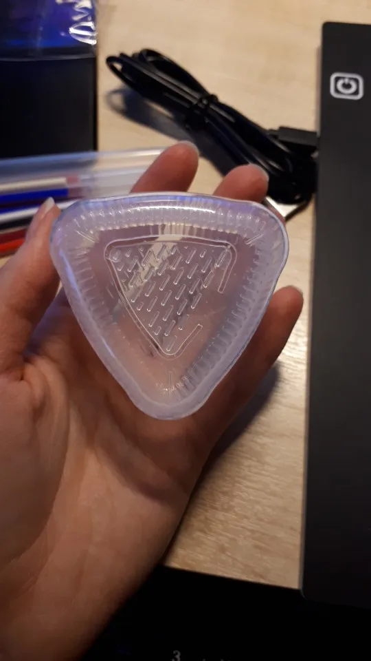 Брала маленький треугольник. Показалось что он немного меньше чем я рассчитывала, но по замерам всё +- верно. Формочка удобная. Заказом довольна. Пришел в Киев меньше чем за месяц. В поштомат meest экспресса))