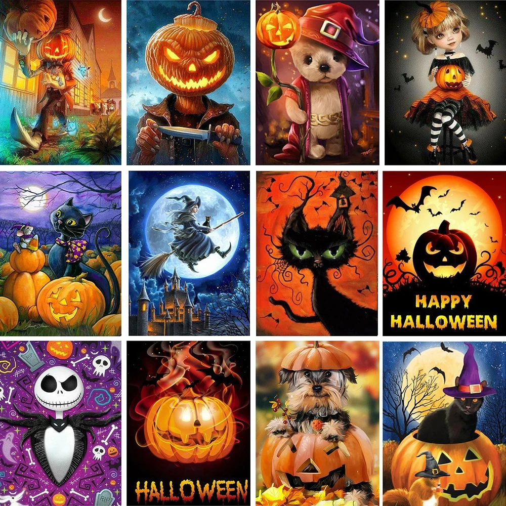Красочная алмазная живопись AB на Хэллоуин, полноразмерная картина, мультяшная вышивка, вышивка крестиком, тыква, стразы, картина, домашний декор