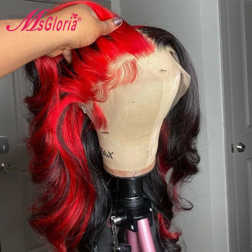 Парик с фронтальной сеткой 13x6, парики из цветных человеческих волос 13x4, парик с эффектом омбре, красный, зеленый, хайлайтер, волнистые волосы Remy, парики из бразильских волос для черных женщин