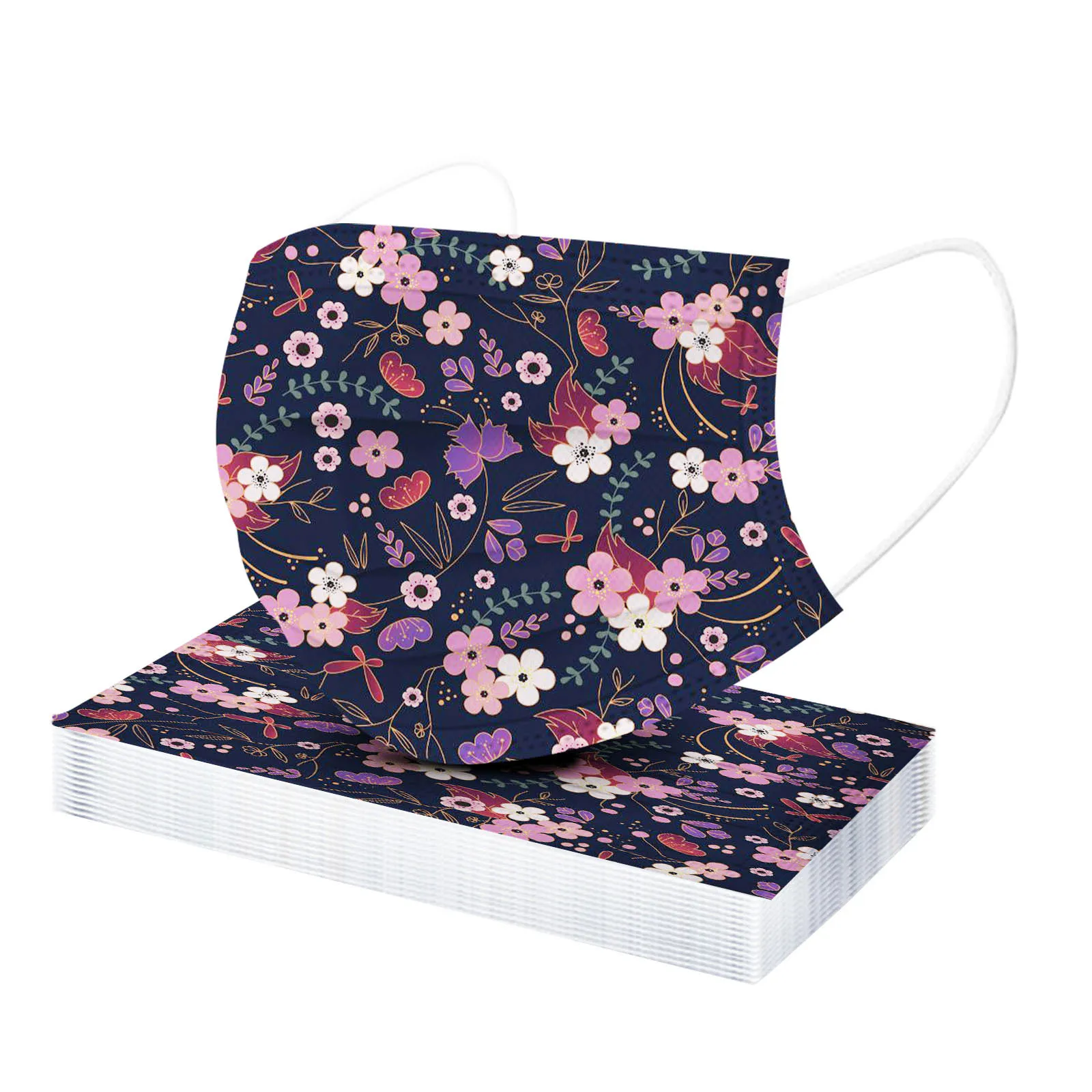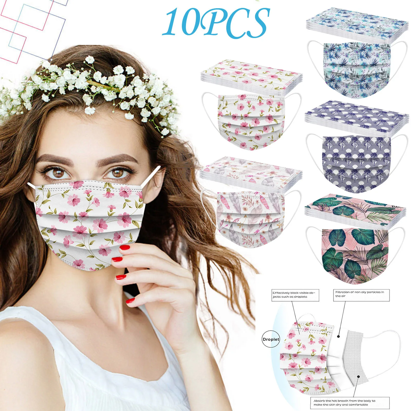 10 шт. одноразовые маски унисекс для лица, трехслойные ветрозащитные маски с цветочным принтом для взрослых