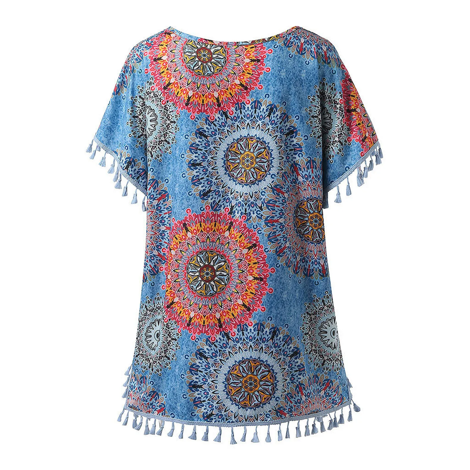 Женская летняя модная шифоновая пляжная блузка с коротким рукавом и бахромой, свободная разноцветная Повседневная рубашка с V-образным вырезом #20 #48
